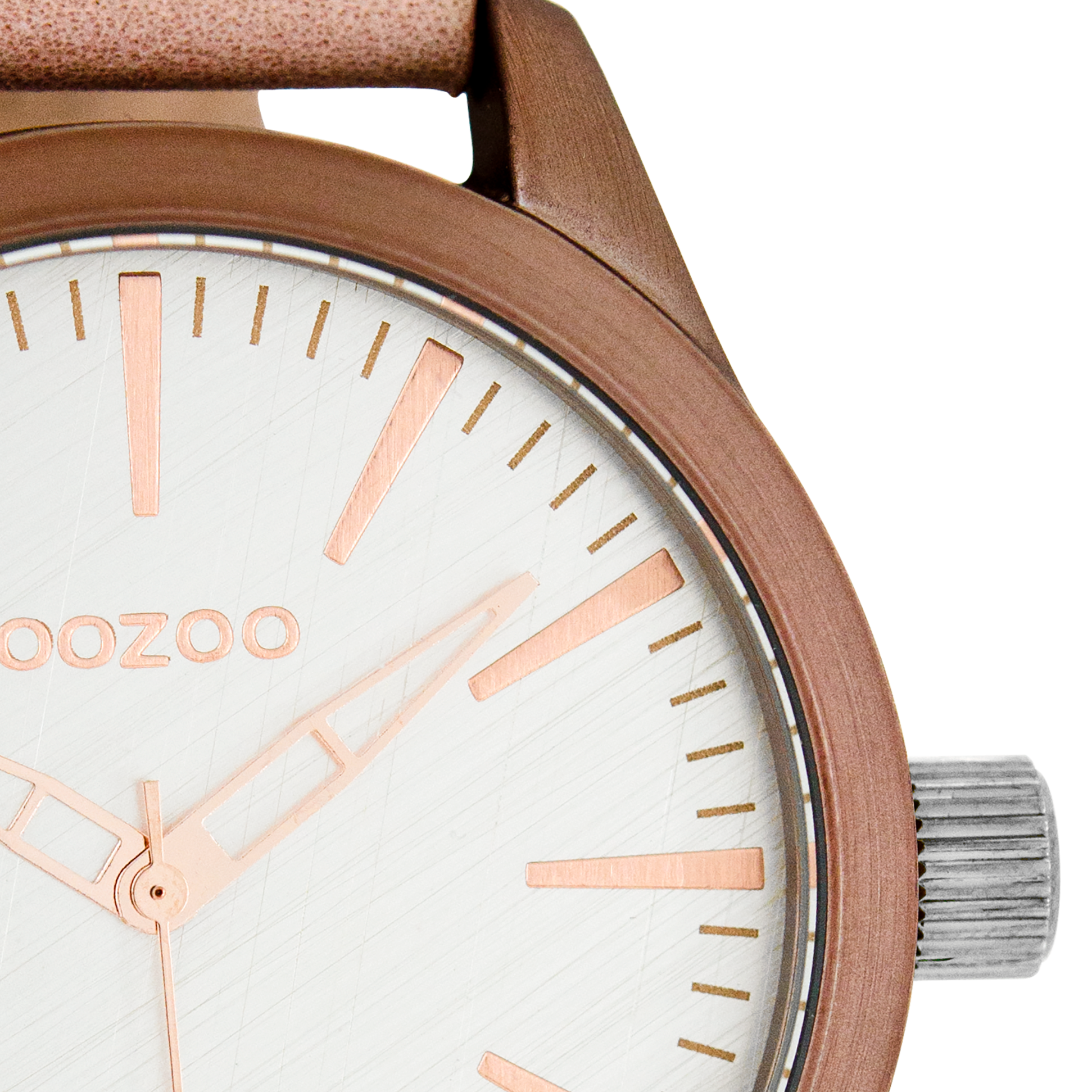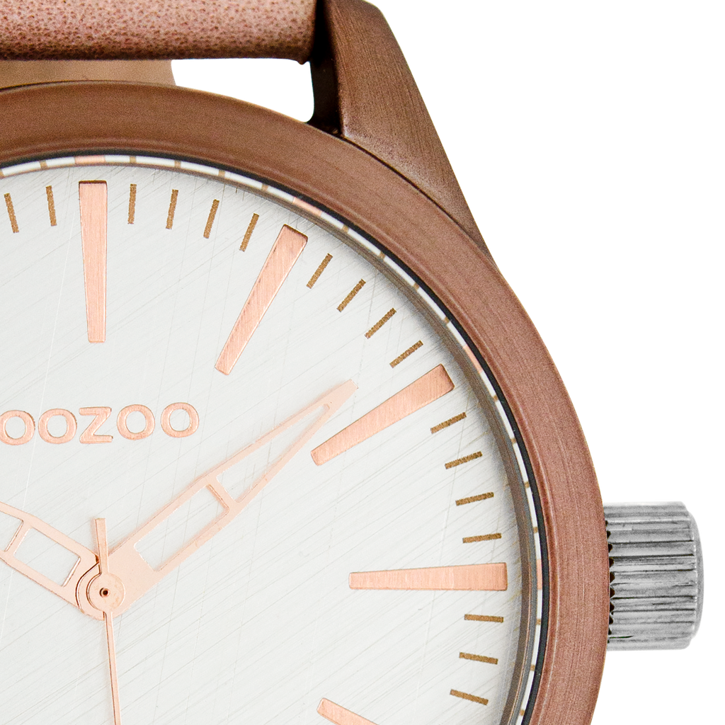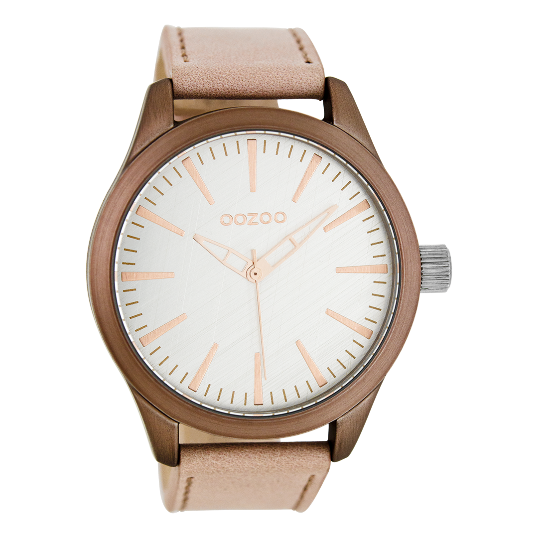 Zacht roze OOZOO horloge met oud roze leren band - C7425
