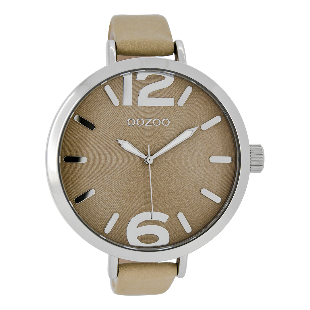 Zilverkleurige OOZOO horloge met zand leren band - C7510
