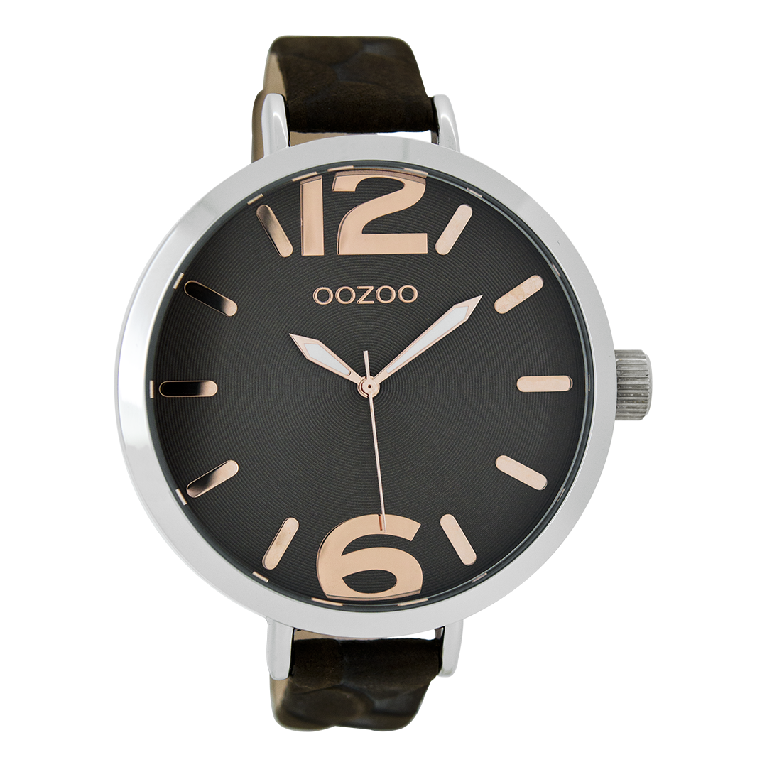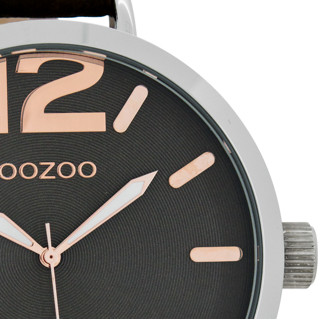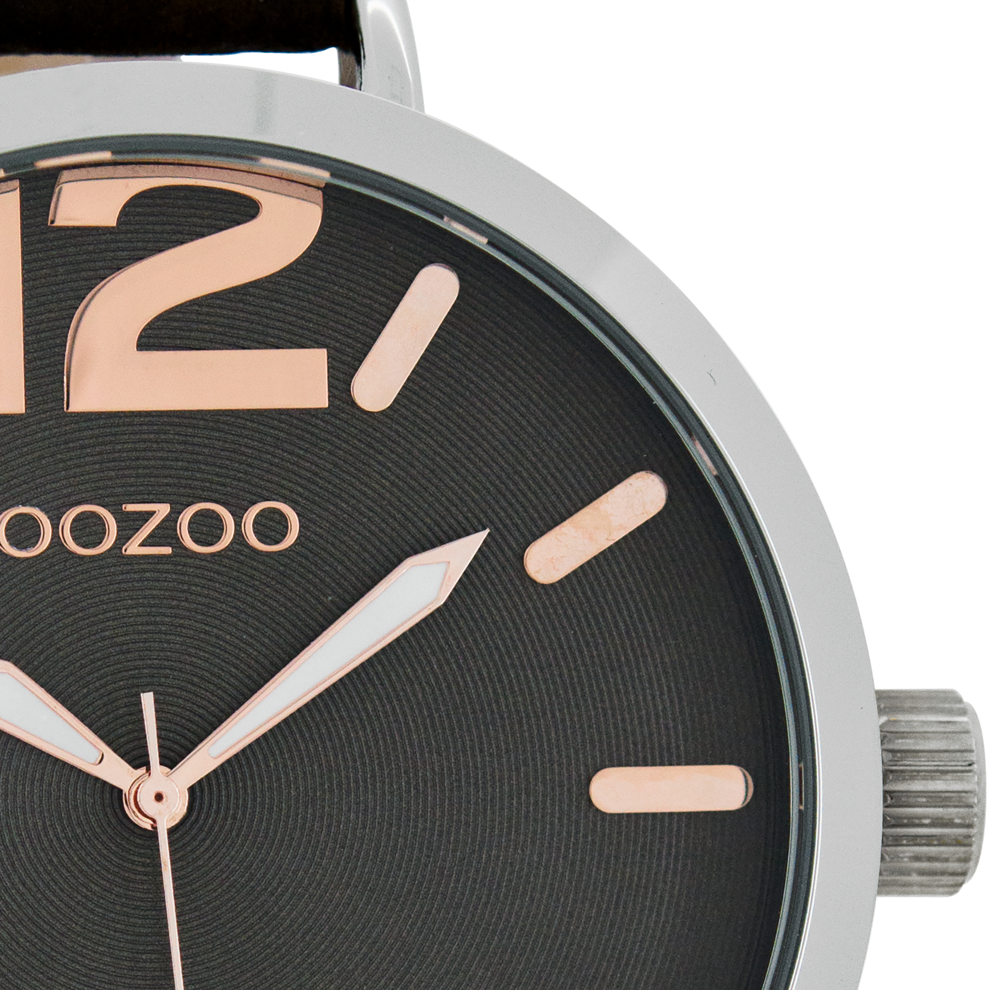 Zilverkleurige OOZOO horloge met donker bruine leren band - C7513