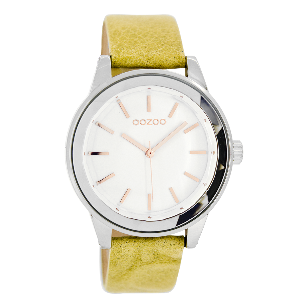 Zilverkleurige OOZOO horloge met zand leren band - C7530