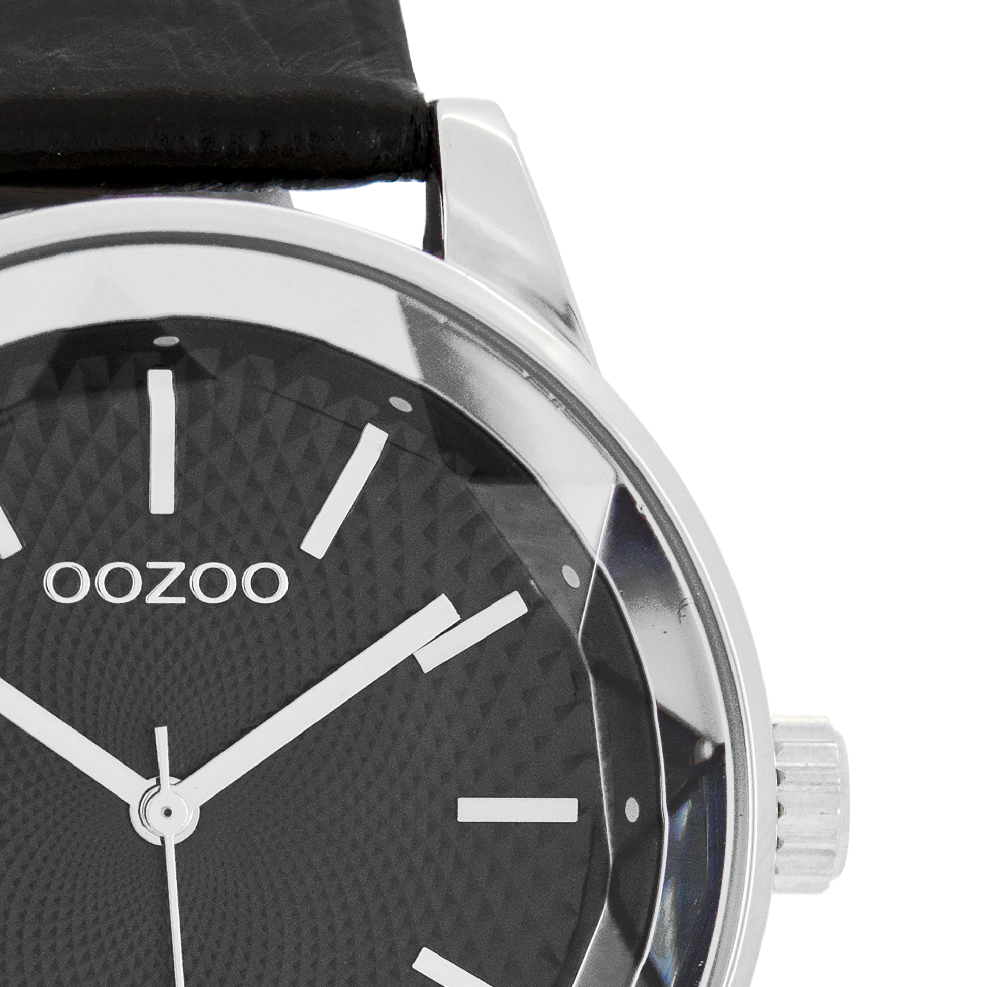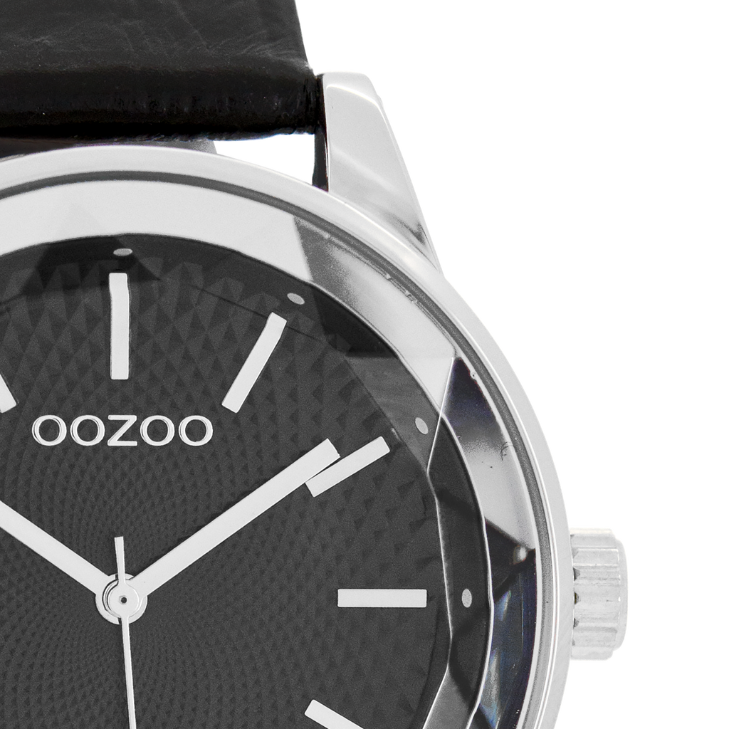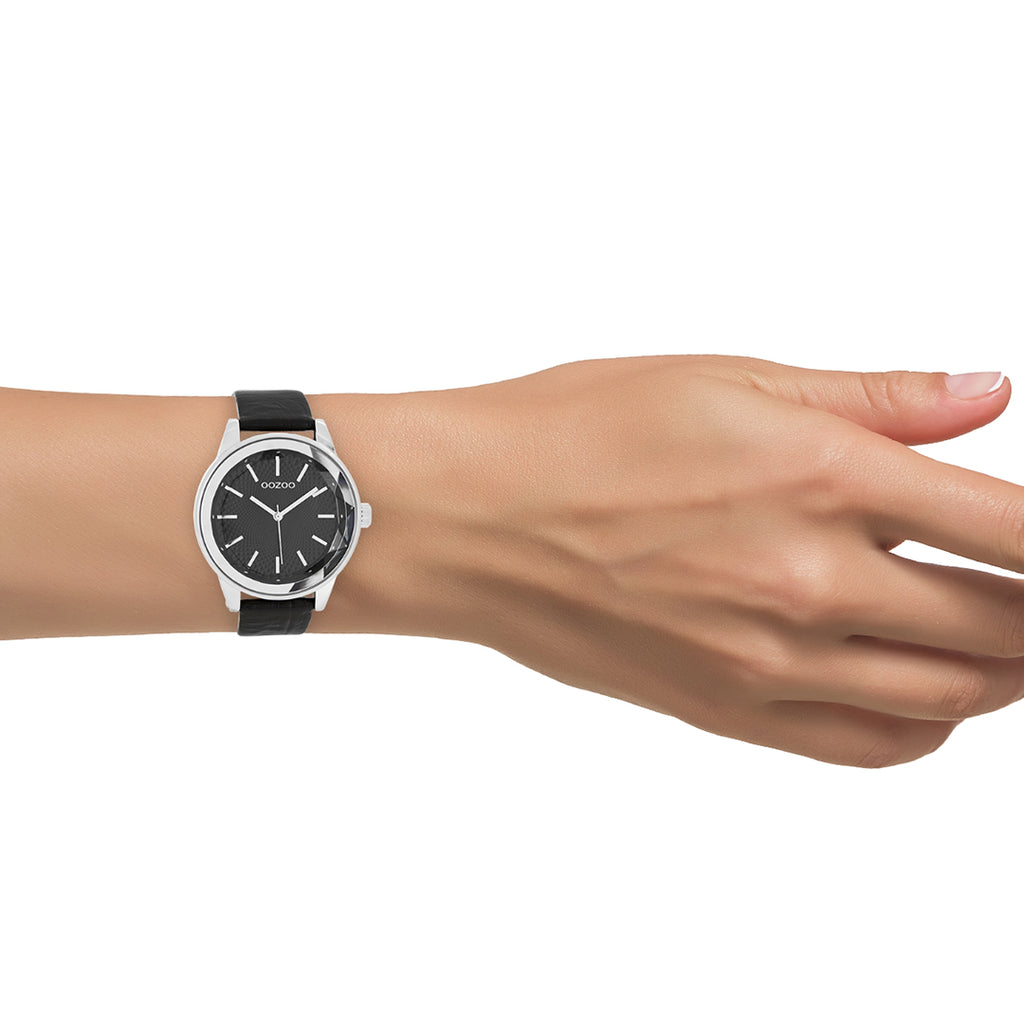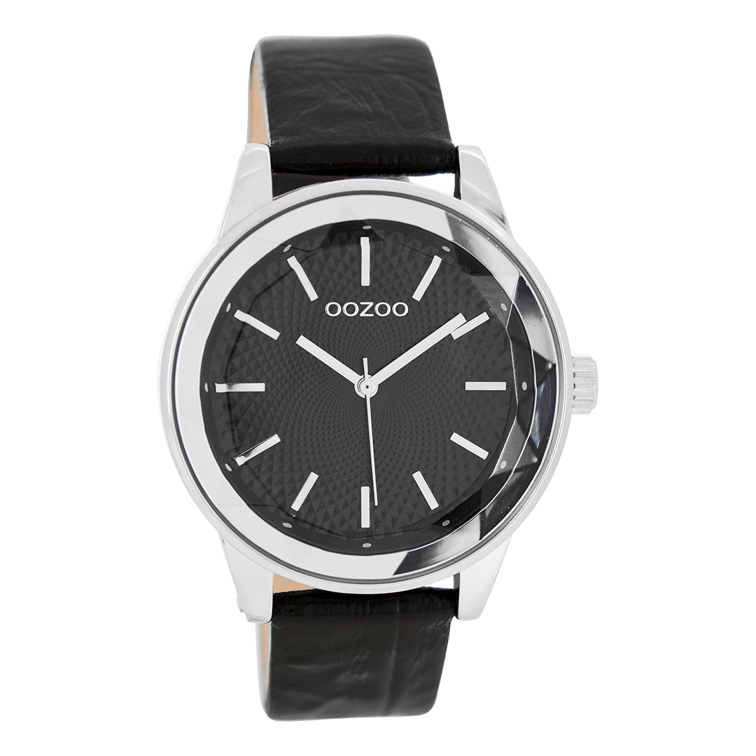 Zilverkleurige OOZOO horloge met zwarte leren band - C7534