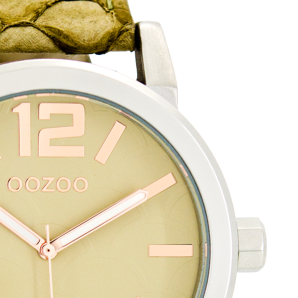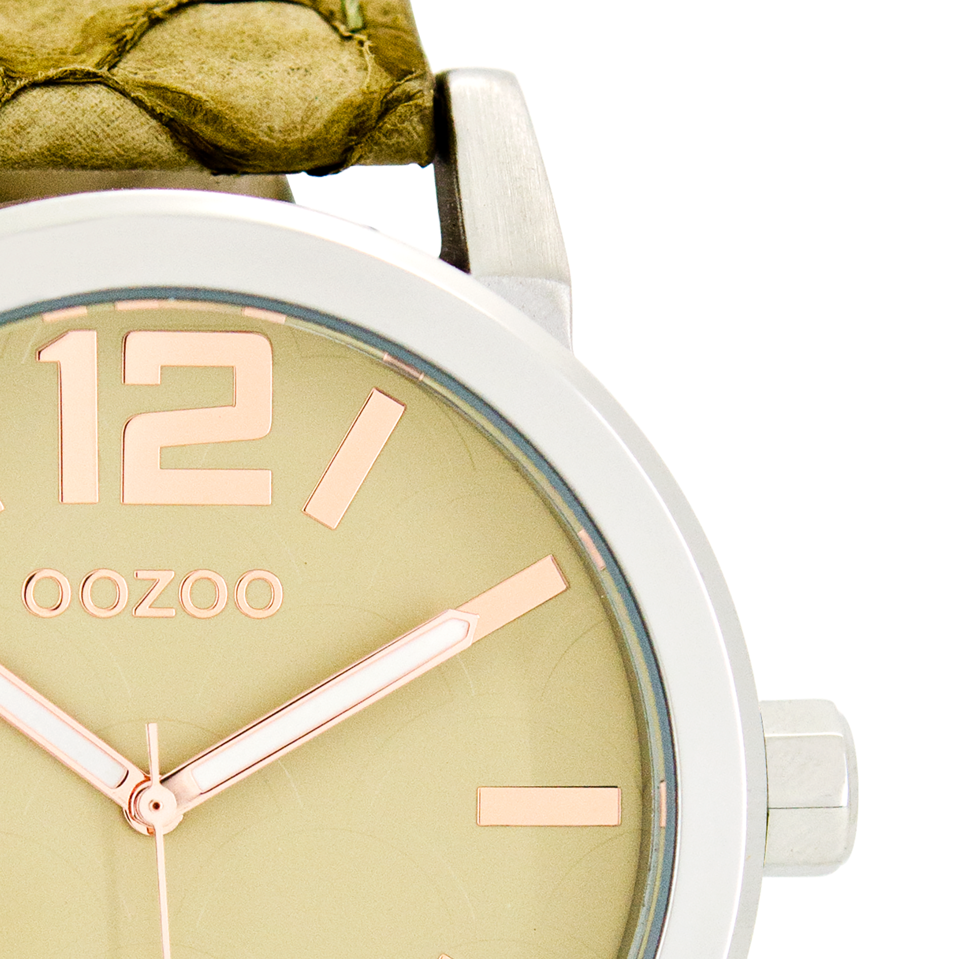 Zilverkleurige OOZOO horloge met zand/licht groene leren band - C7995