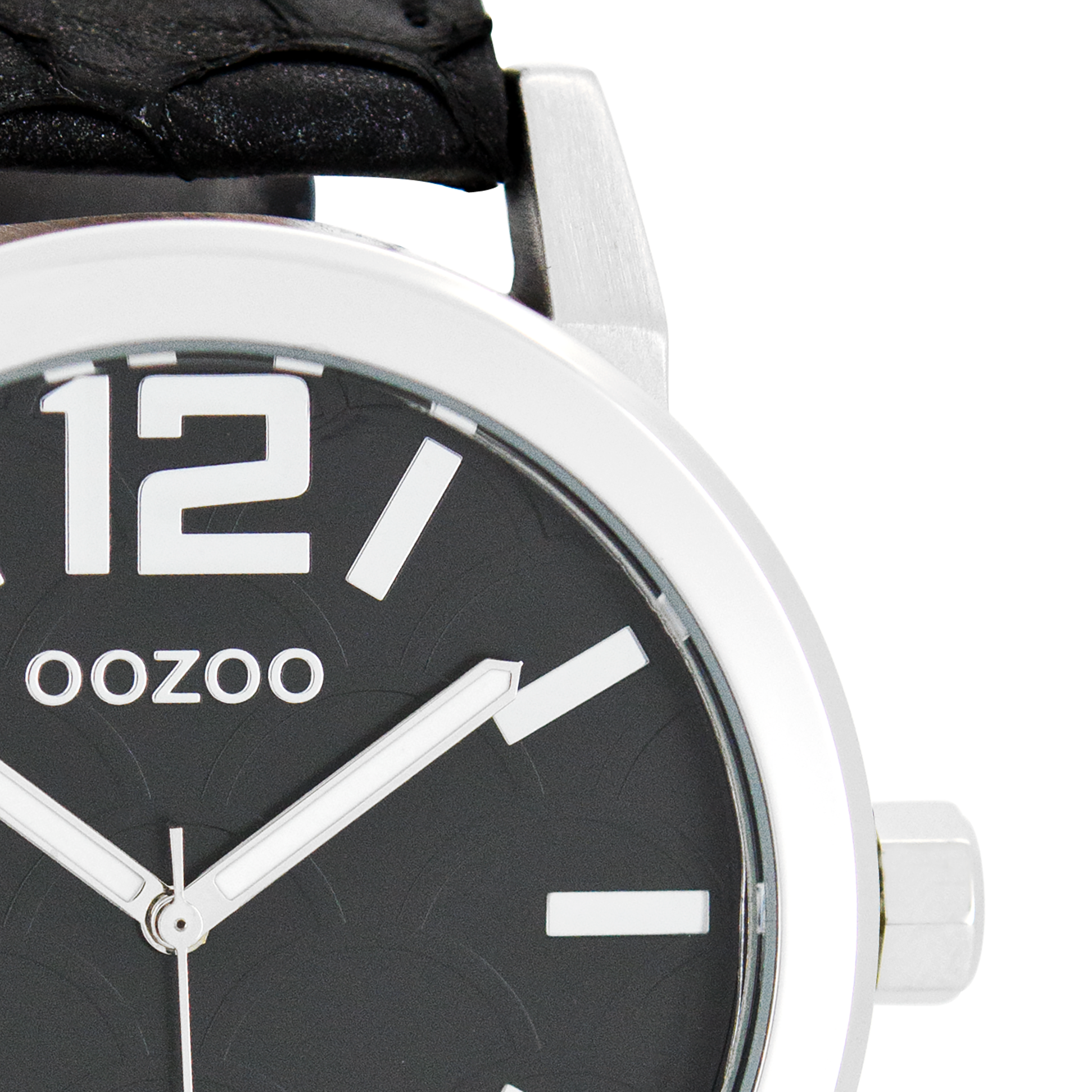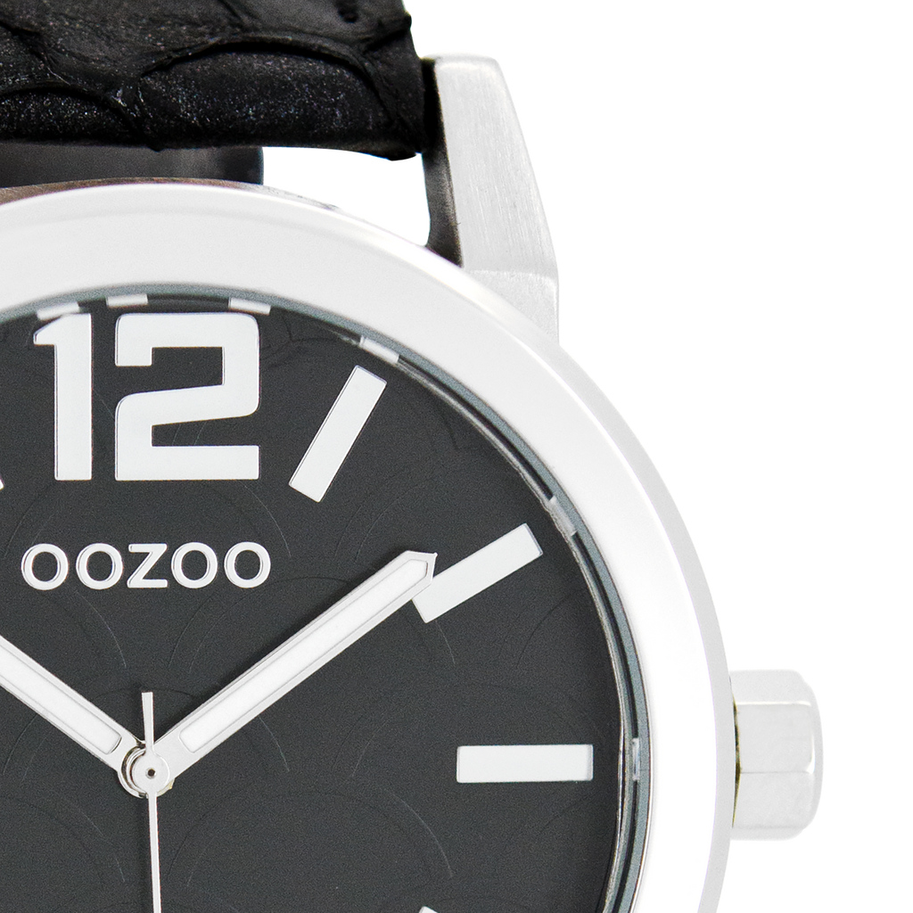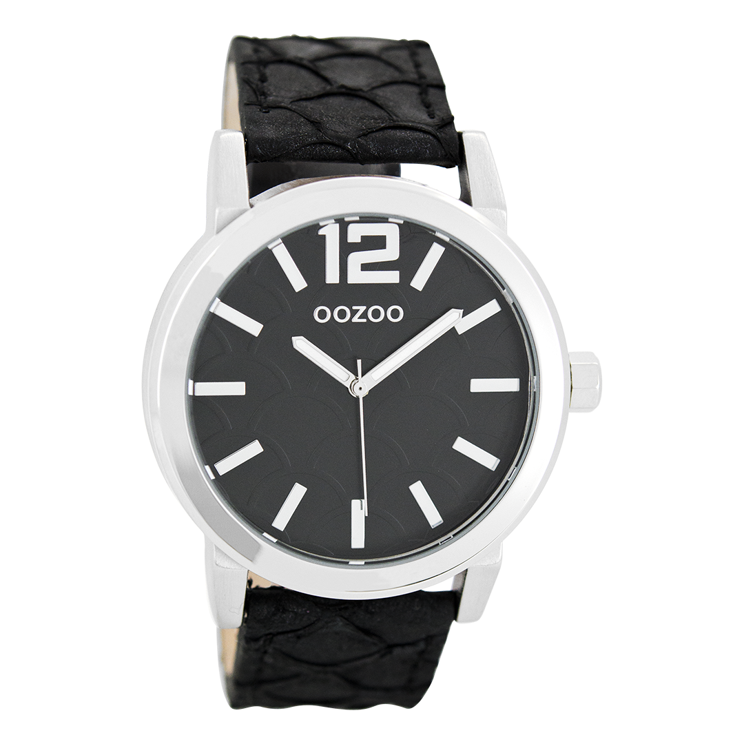 Zilverkleurige OOZOO horloge met zwarte leren band - C7999