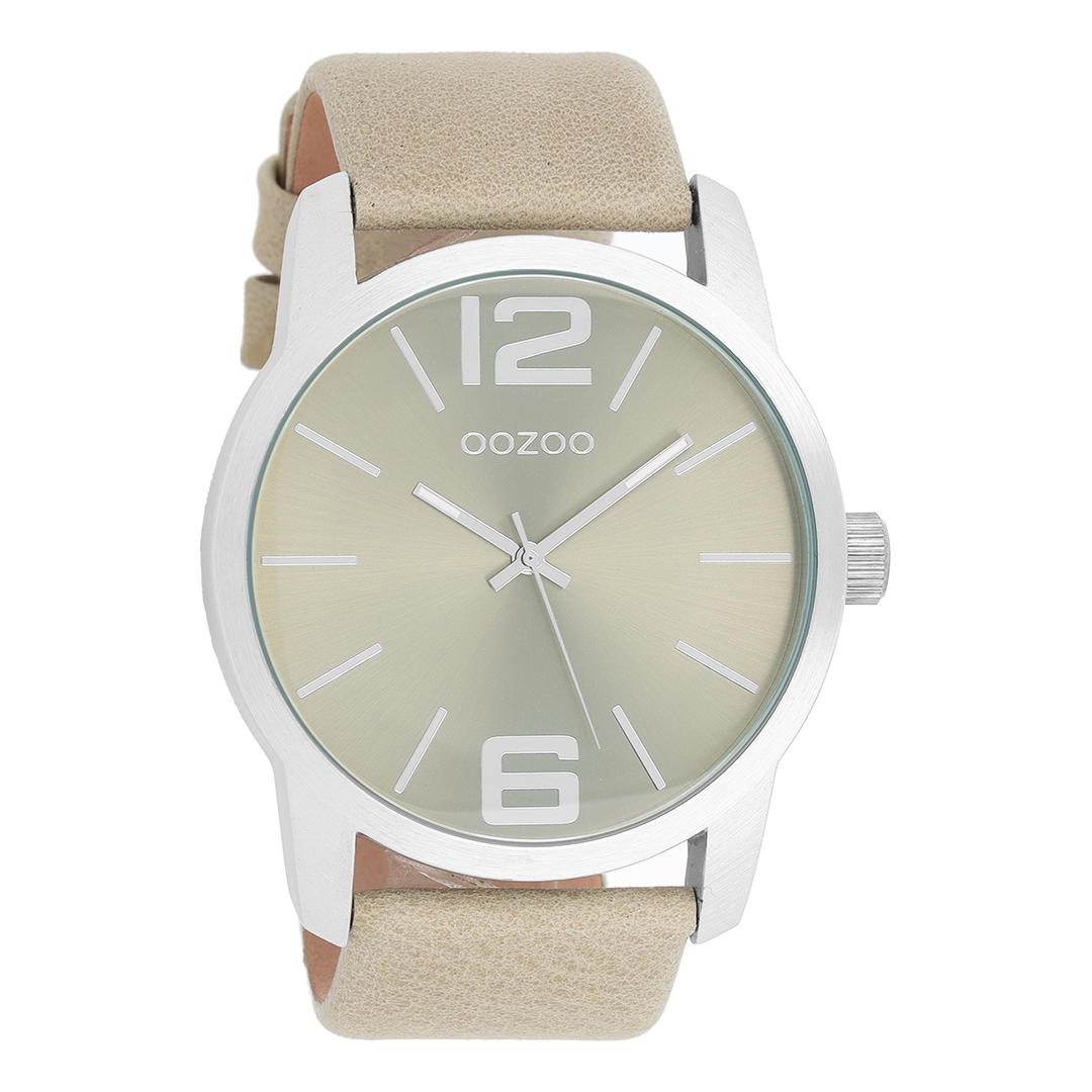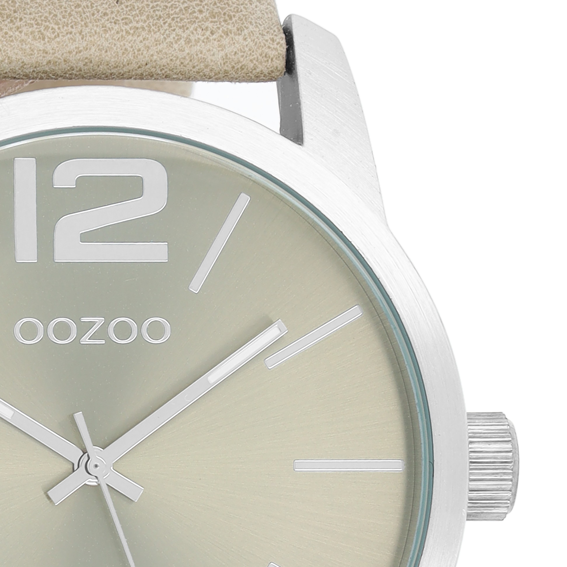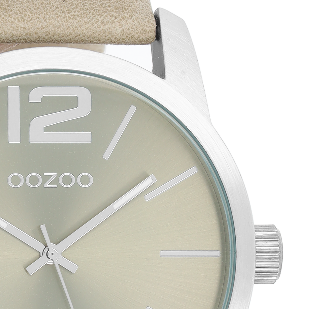Zilverkleurige OOZOO horloge met zand/licht groene leren band - C8031