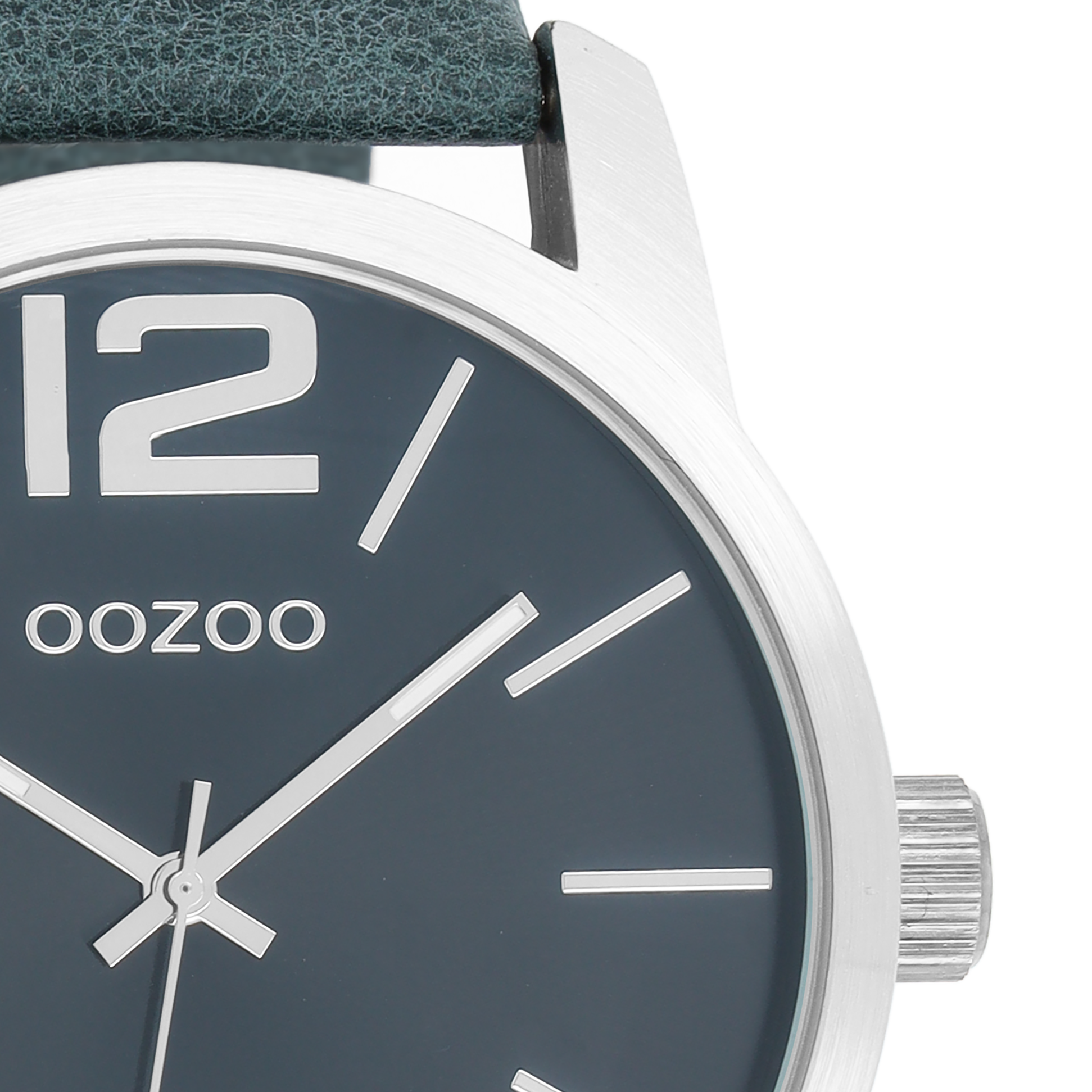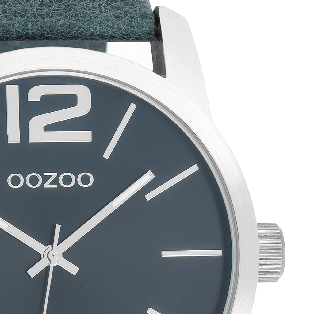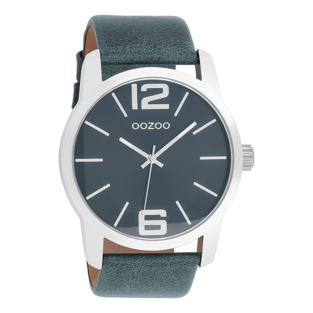 Zilverkleurige OOZOO horloge met blauwe leren band - C8034
