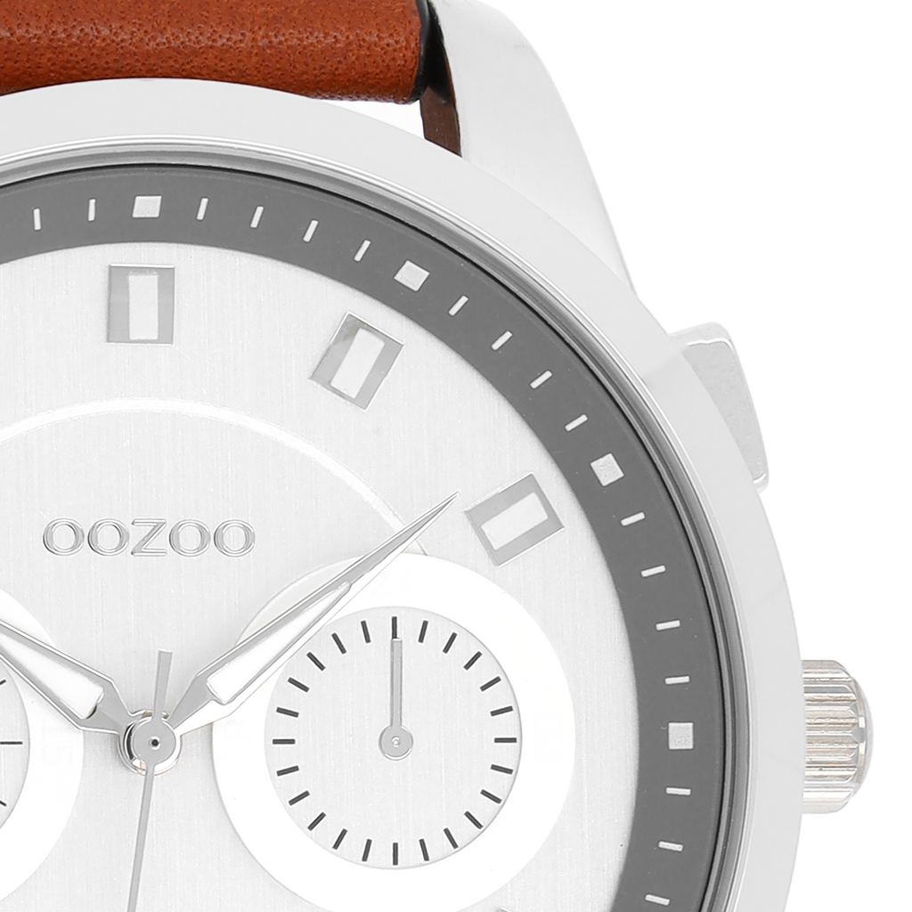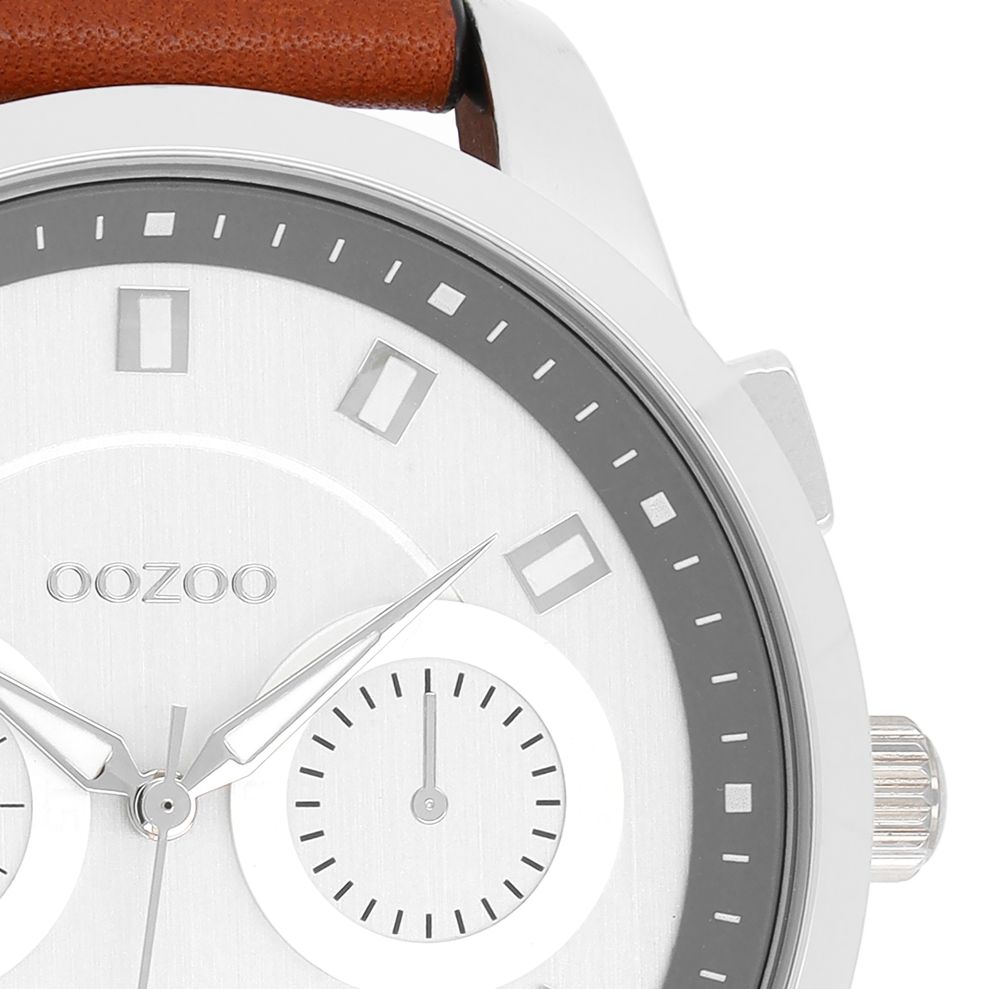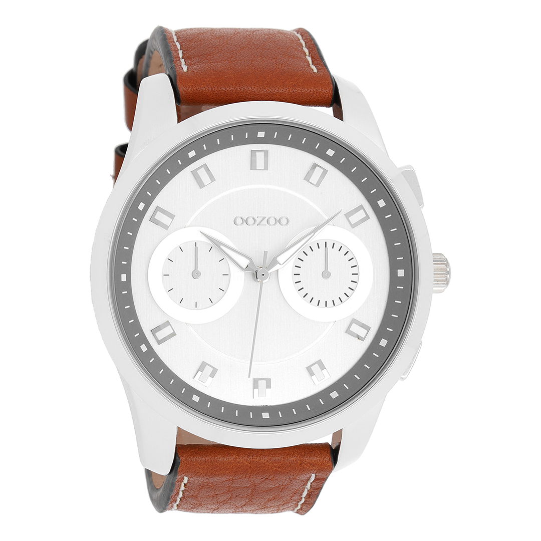 Zilverkleurige OOZOO horloge met cognac leren band - C8205
