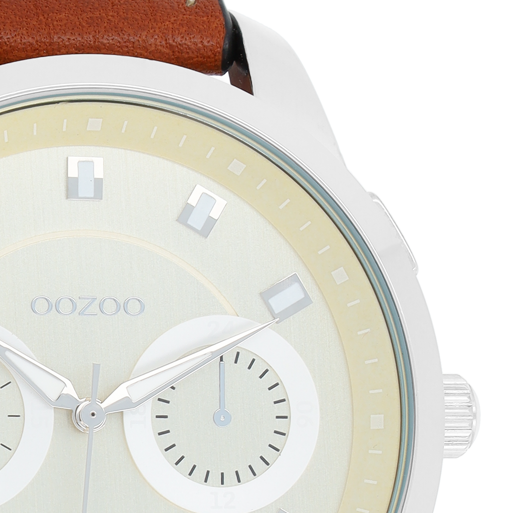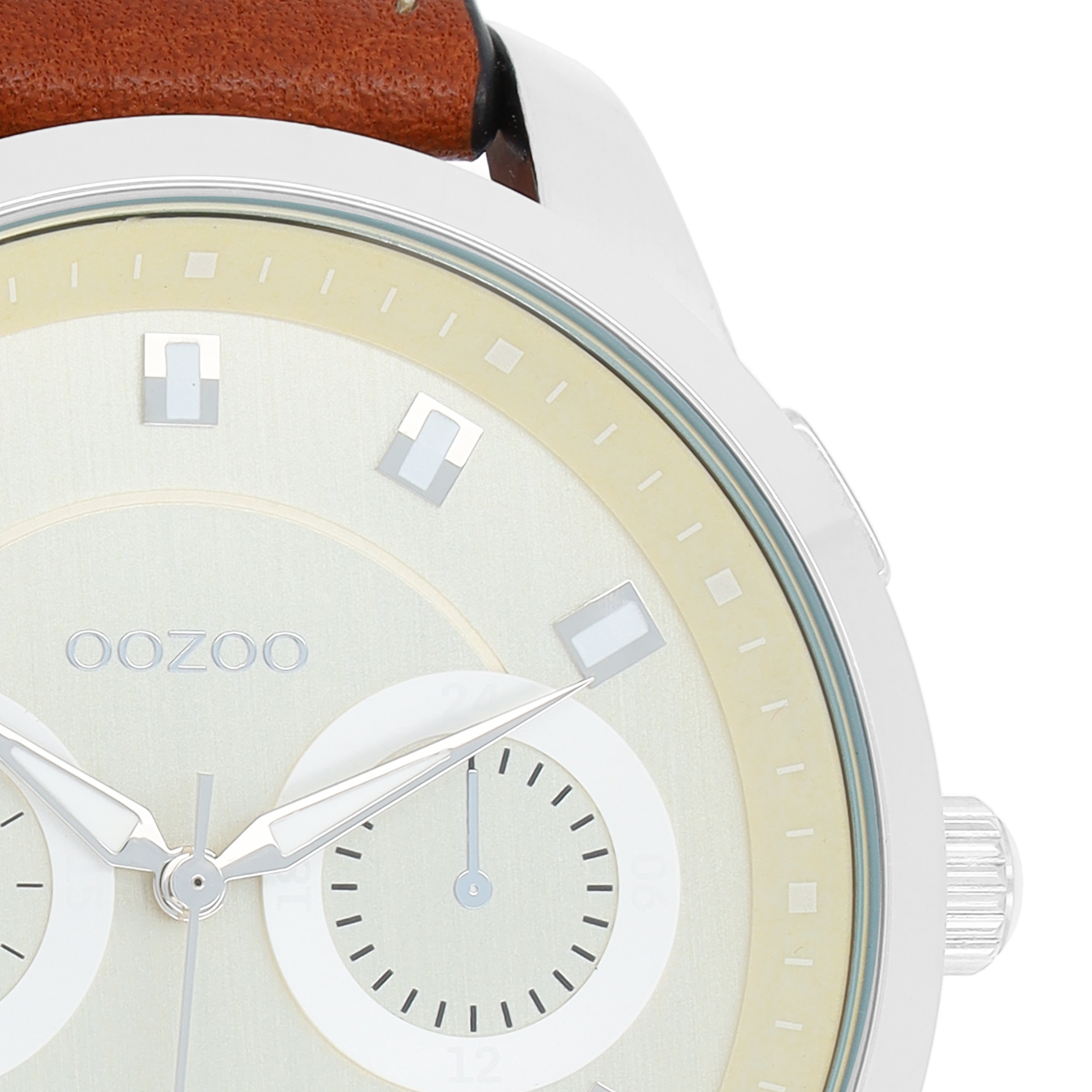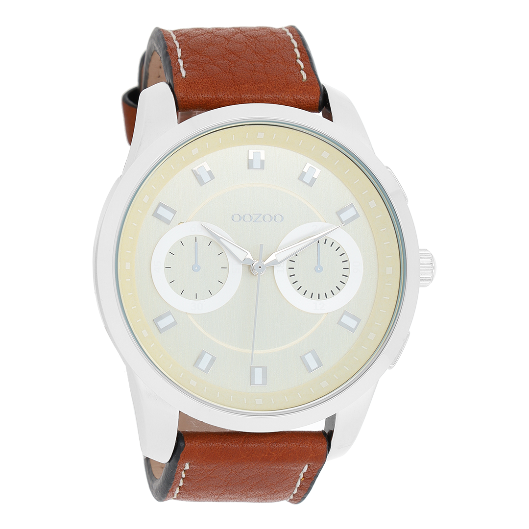 Zilverkleurige OOZOO horloge met cognac leren band - C8206