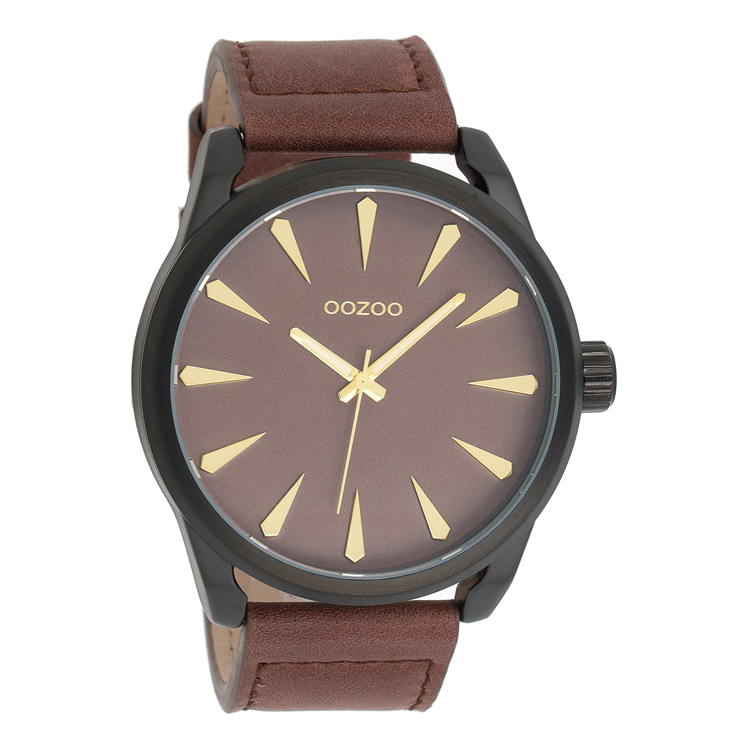 Zwarte OOZOO horloge met bruine leren band - C8227
