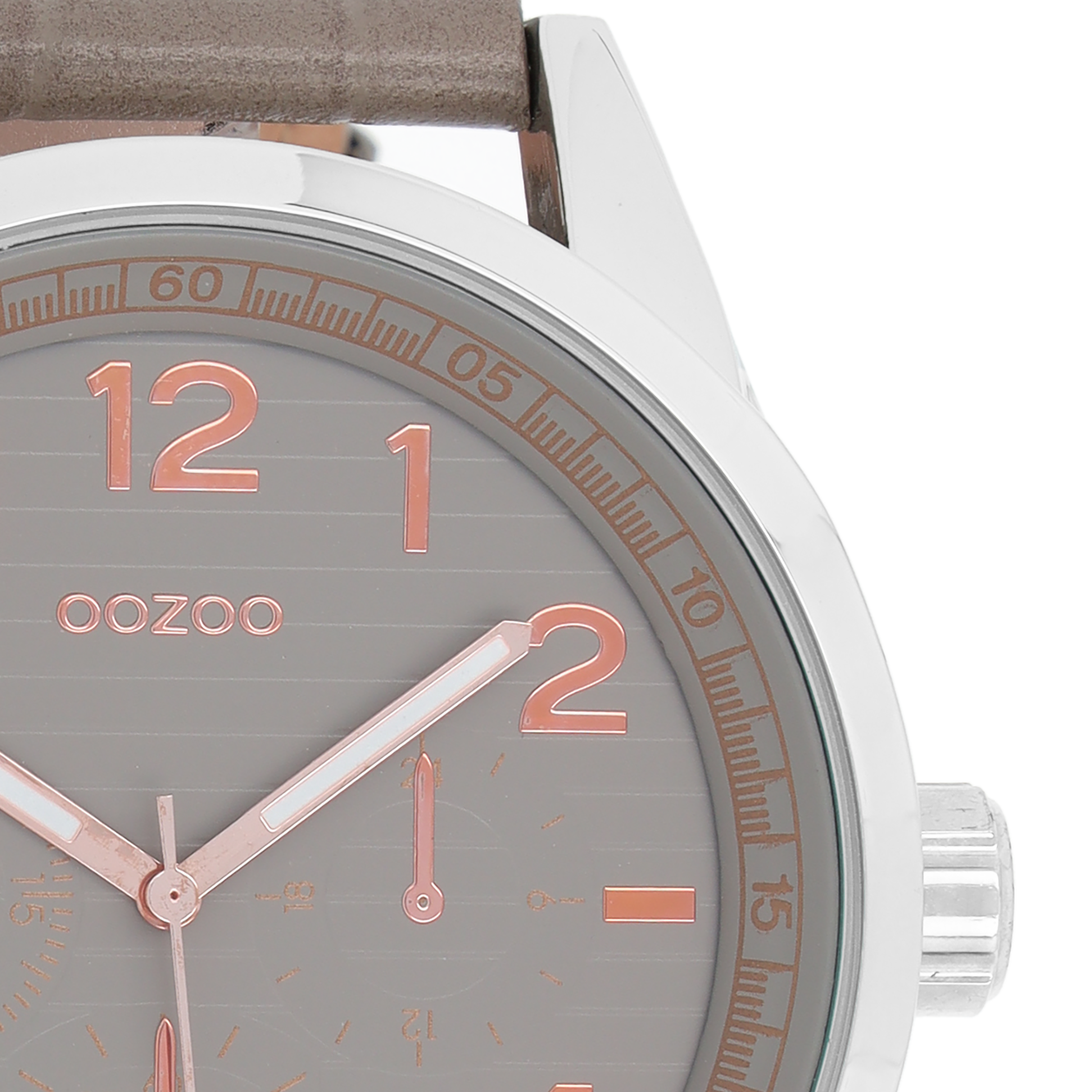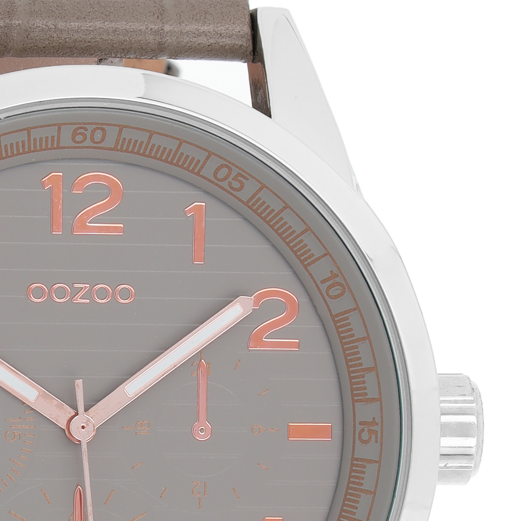 Zilverkleurige OOZOO horloge met taupe leren band - C8286