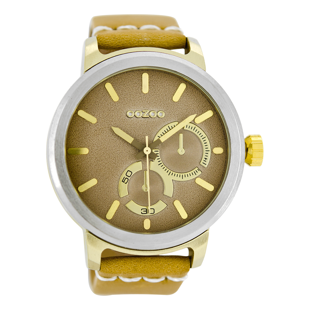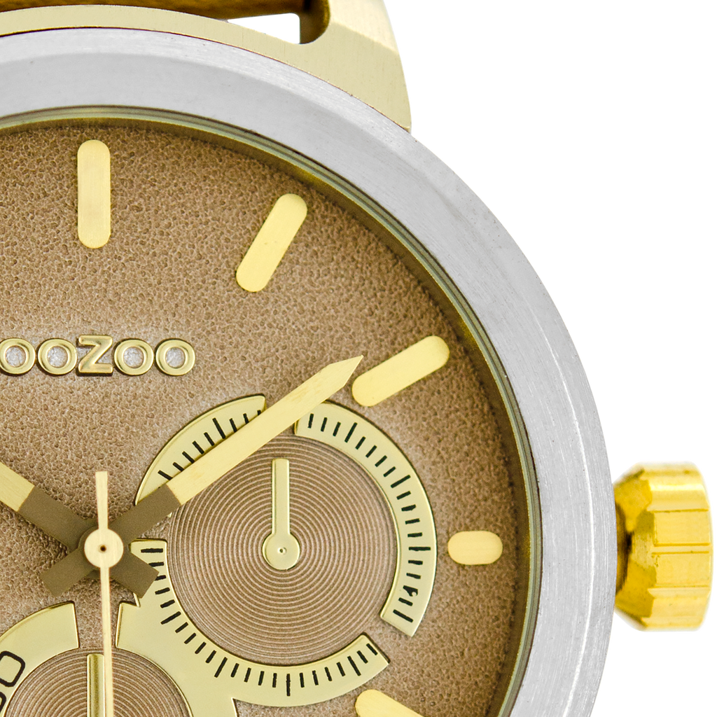 Zilverkleurige OOZOO horloge met zand leren band - C8293