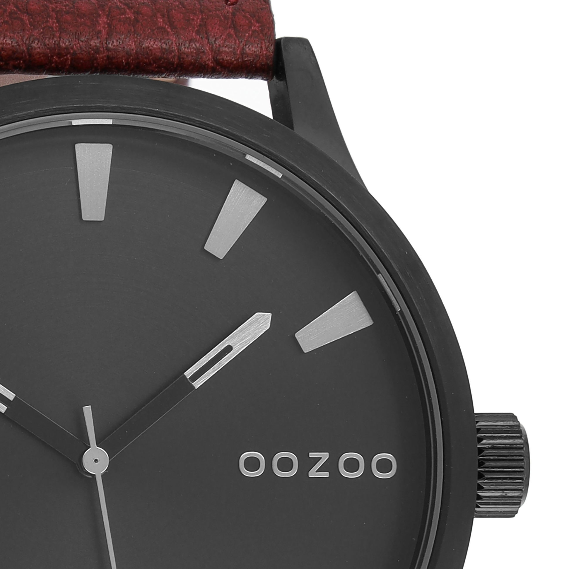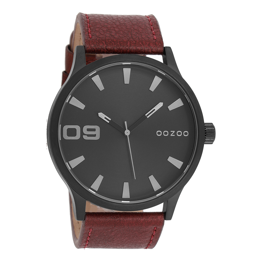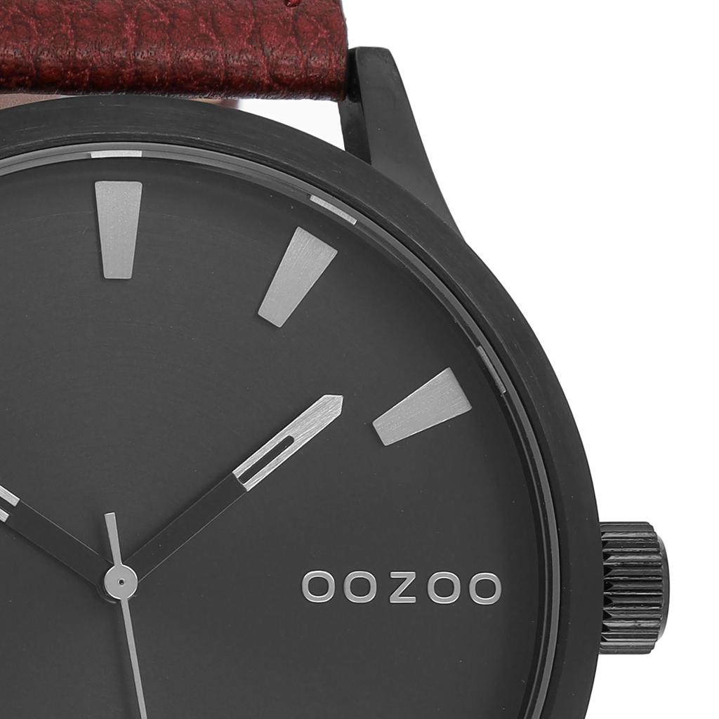 Zwarte OOZOO horloge met bruine leren band - C8532