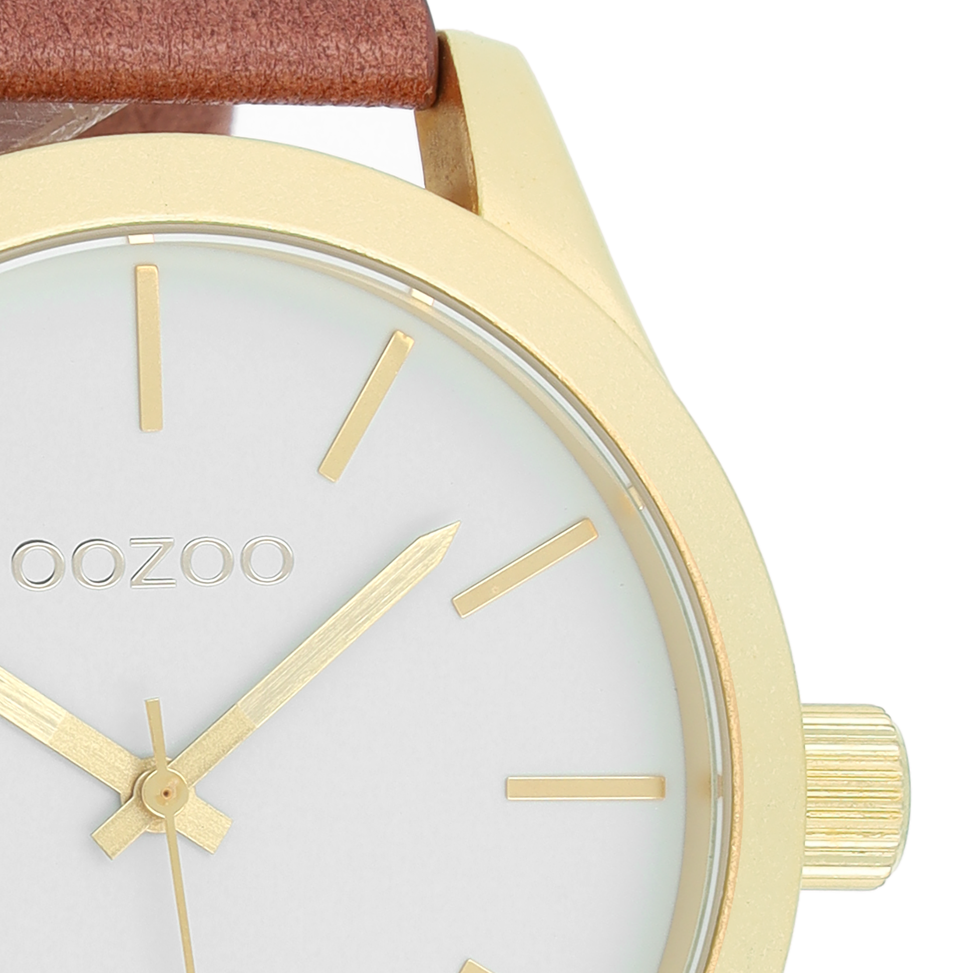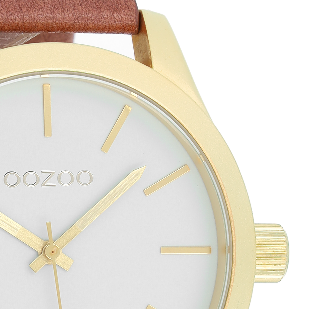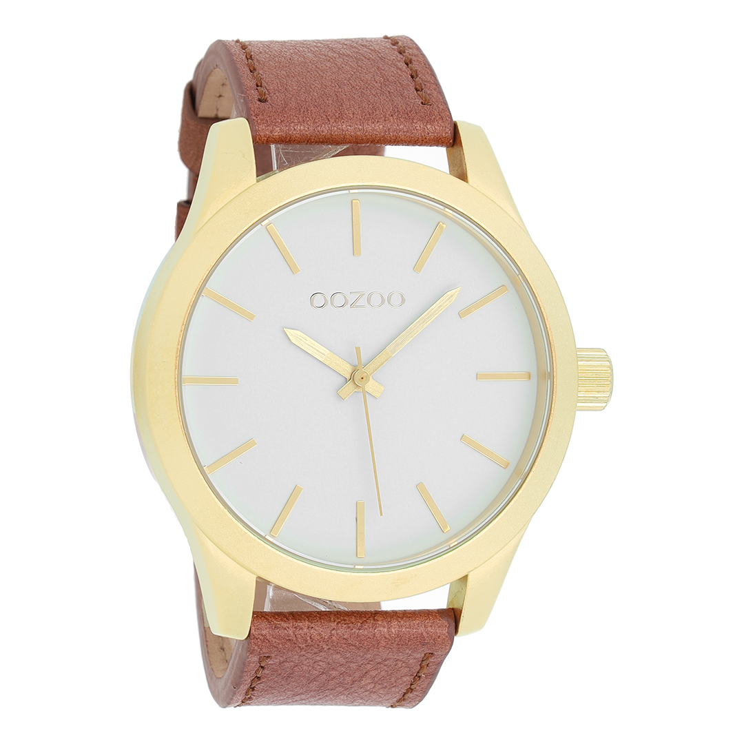 Goudkleurige OOZOO horloge met bruine leren band - C8557