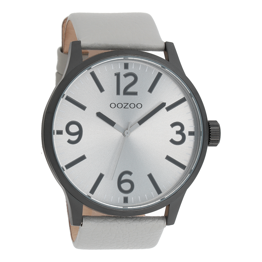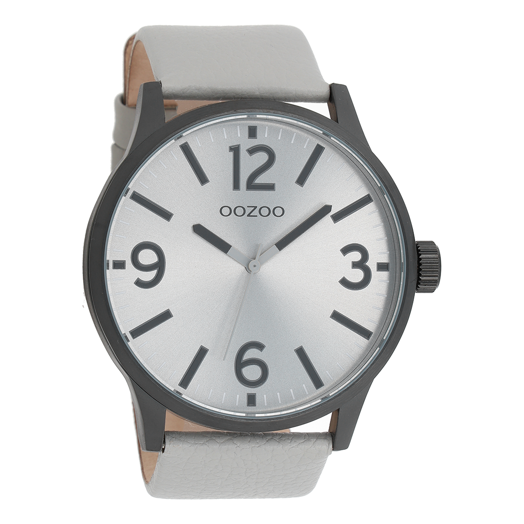 Zwarte OOZOO horloge met licht grijze leren band - C8571