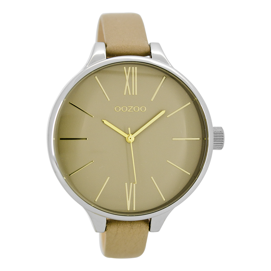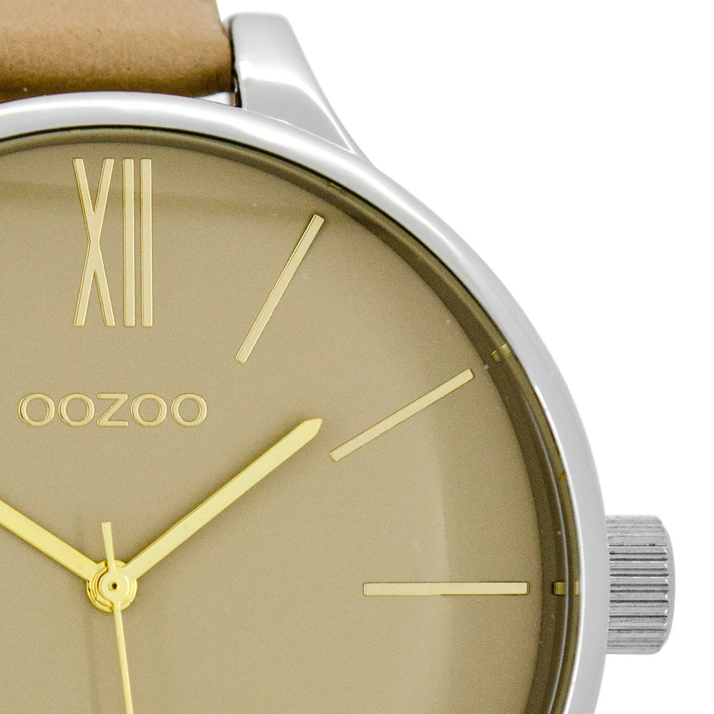 Zilverkleurige OOZOO horloge met zand leren band - C8636
