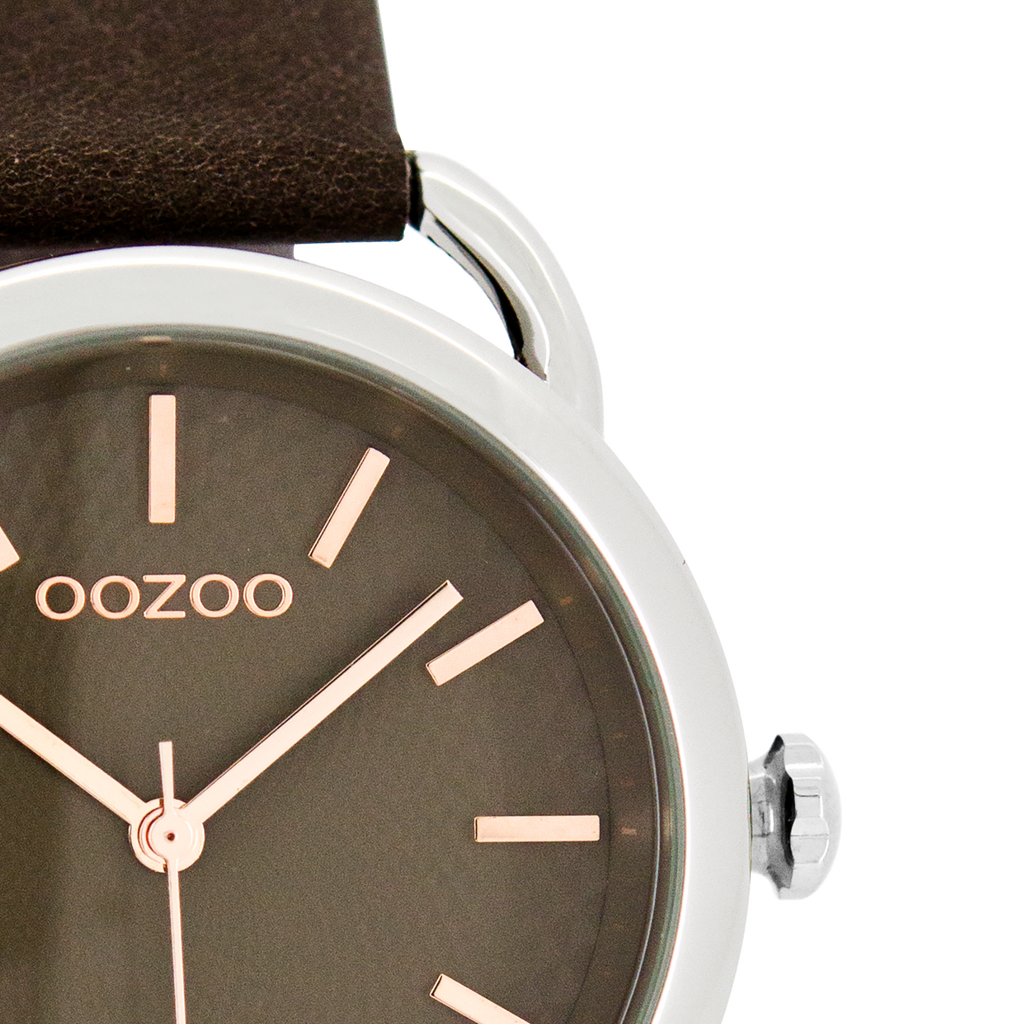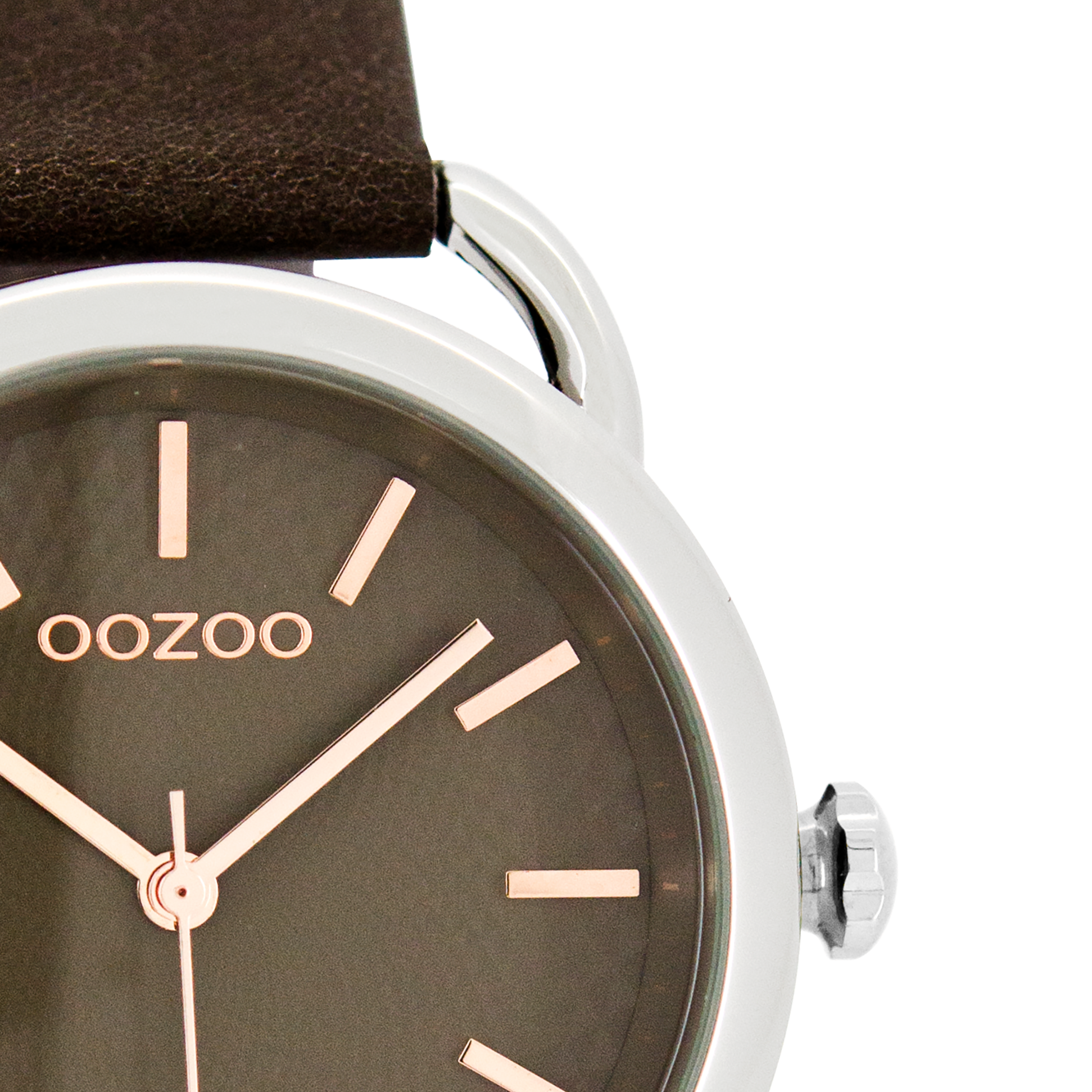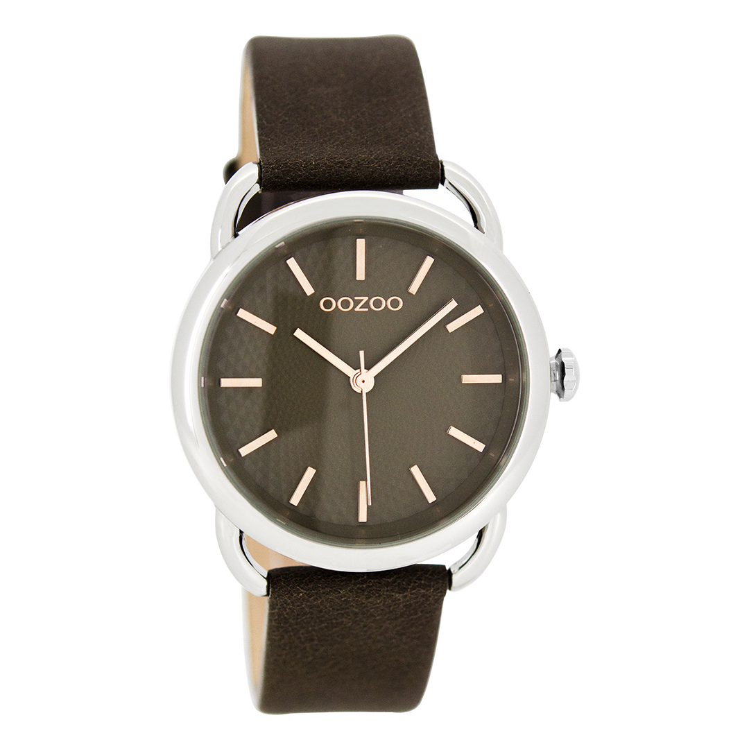 Zilverkleurige OOZOO horloge met bruine leren band - C8719