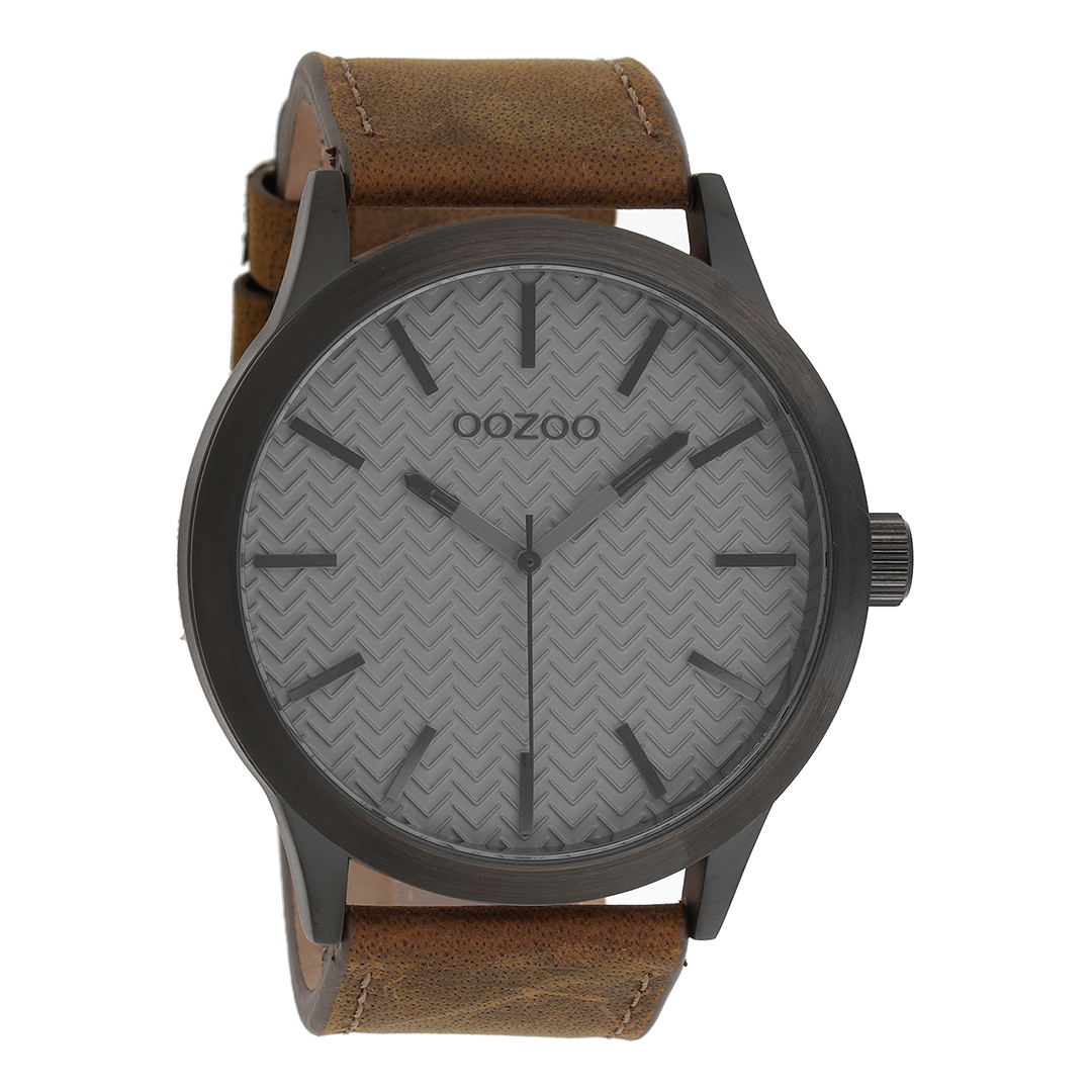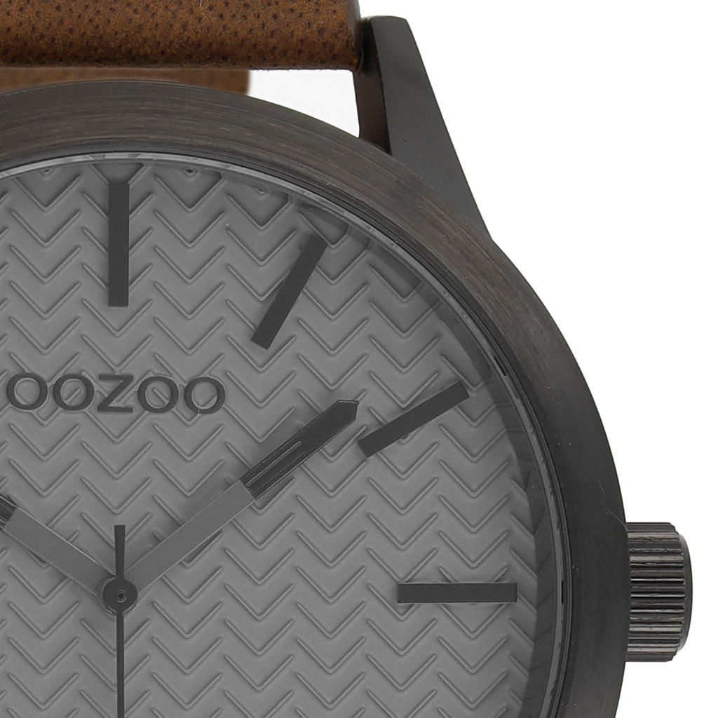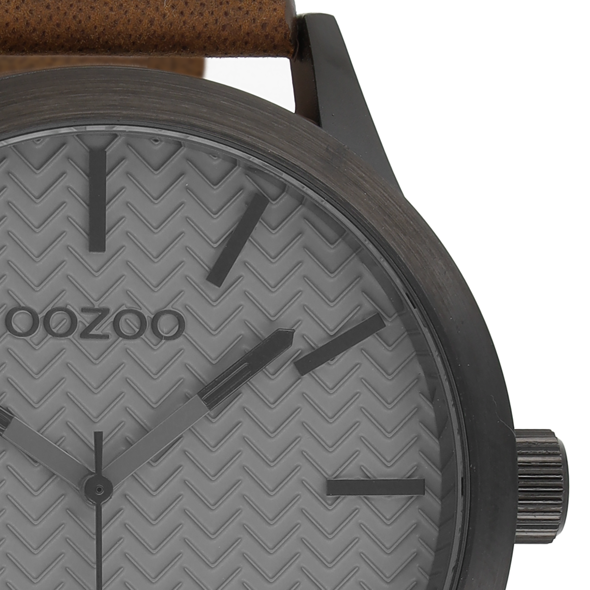 Zwarte OOZOO horloge met bruine leren band - C9012