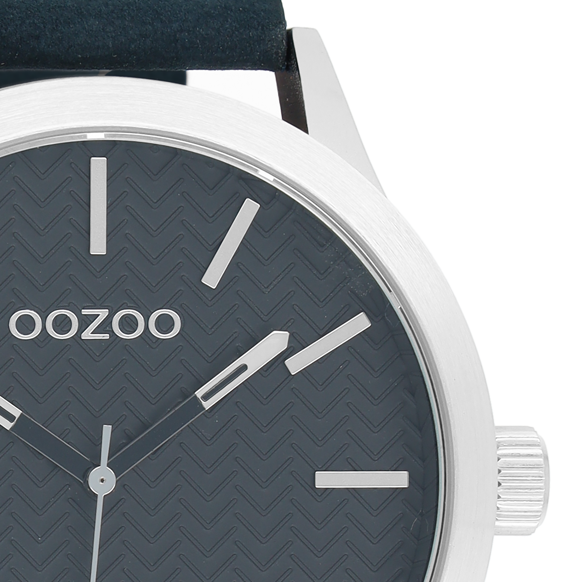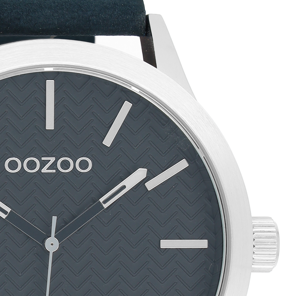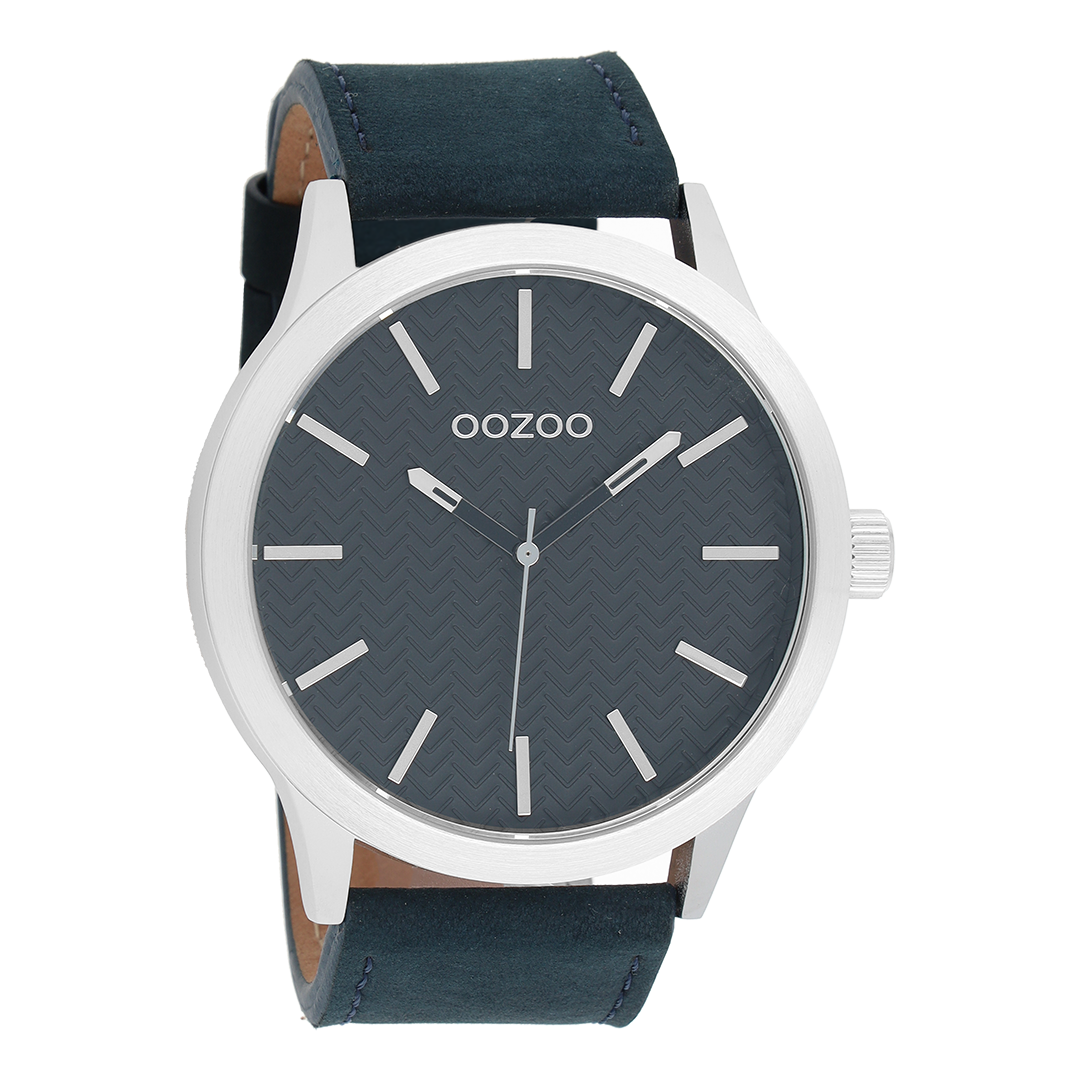Zilverkleurige OOZOO horloge met donker blauwe leren band - C9013