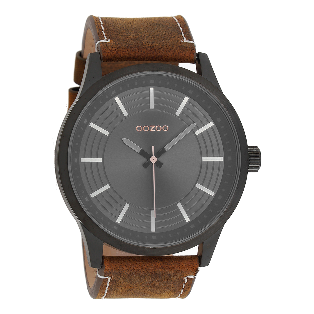 Zwarte OOZOO horloge met donker bruine leren band - C9077