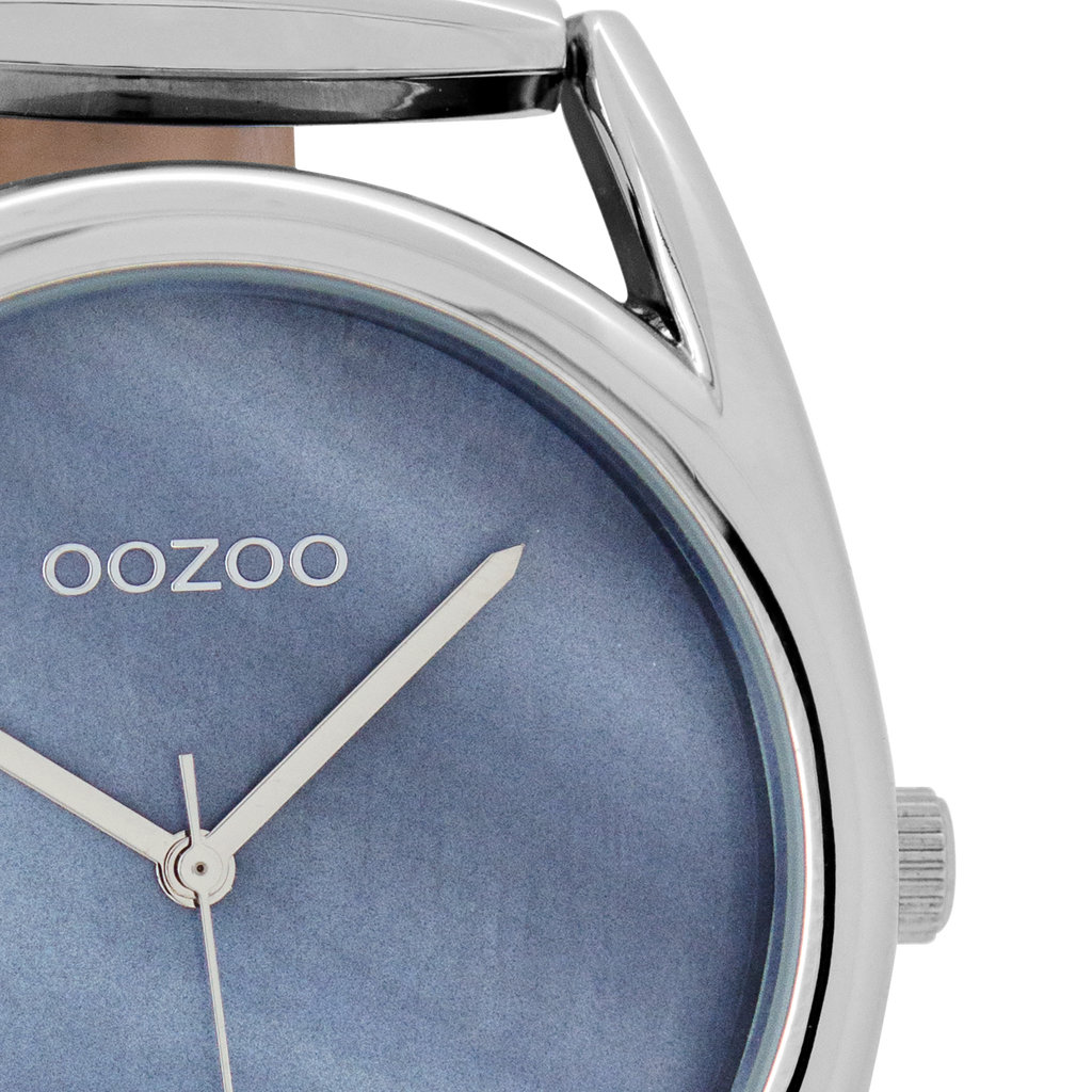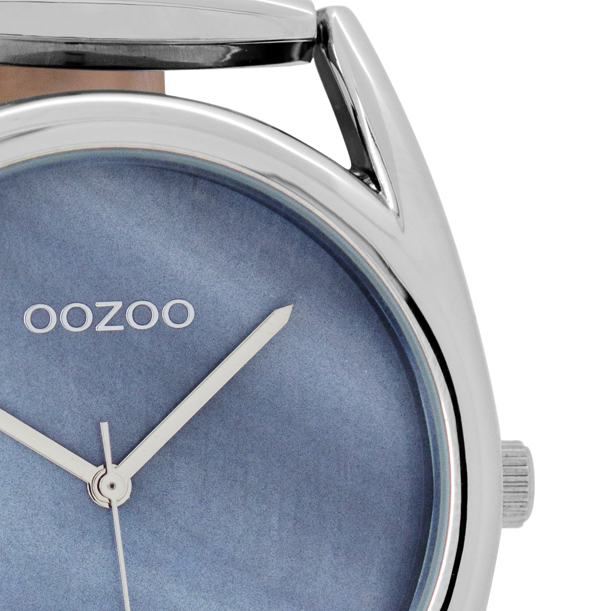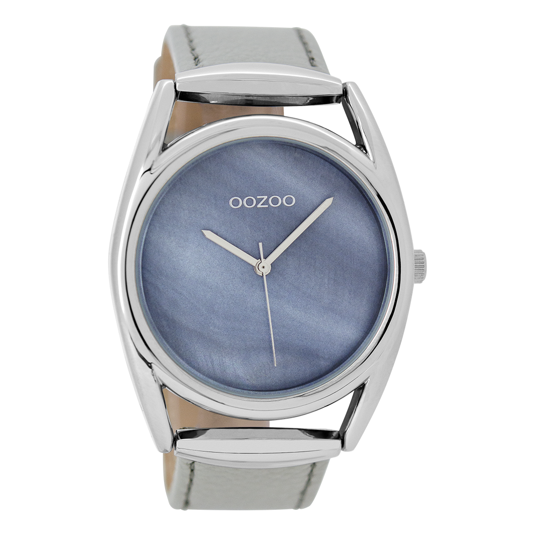 Zilverkleurige OOZOO horloge met steengrijze leren band - C9165