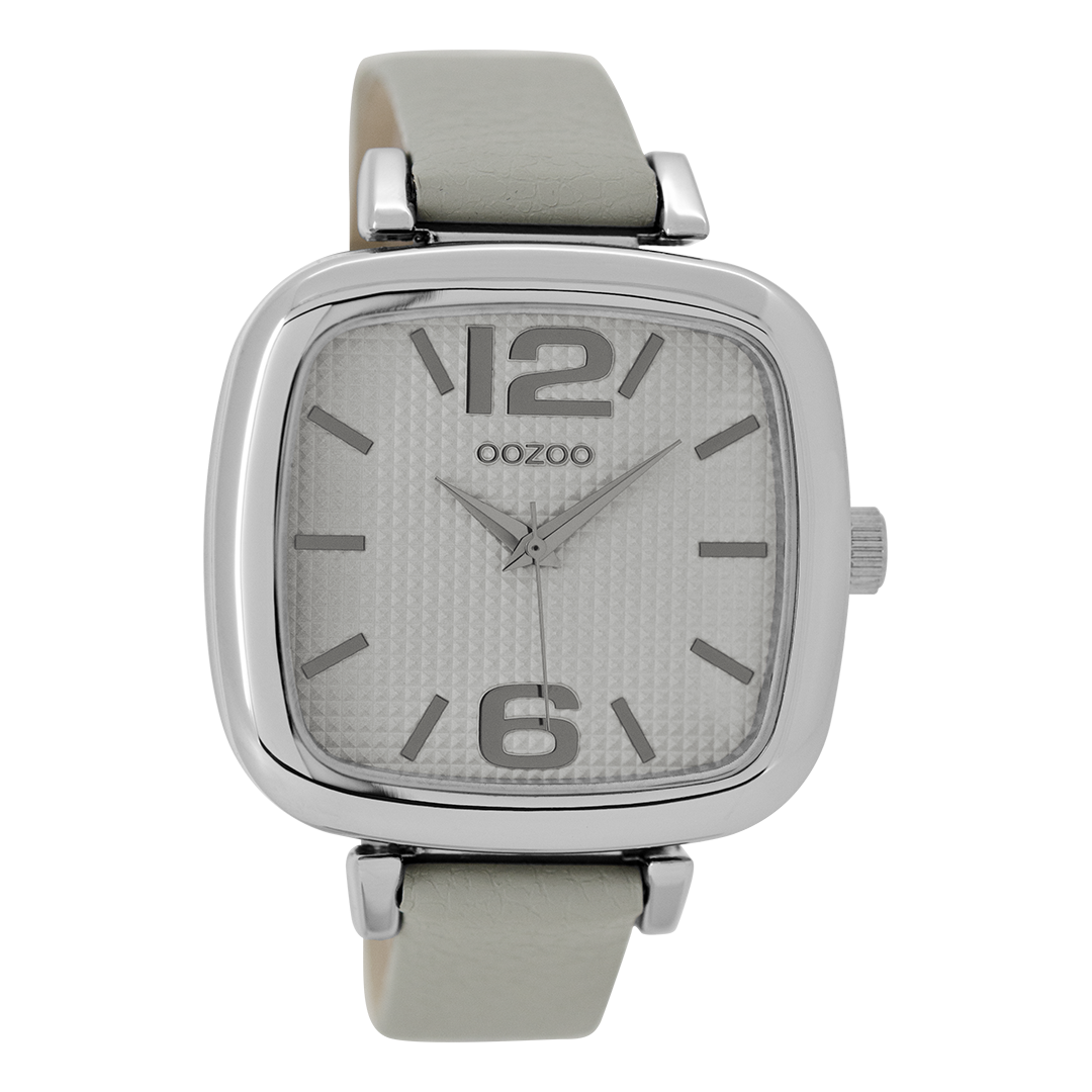 Zilverkleurige OOZOO horloge met steengrijze leren band - C9180