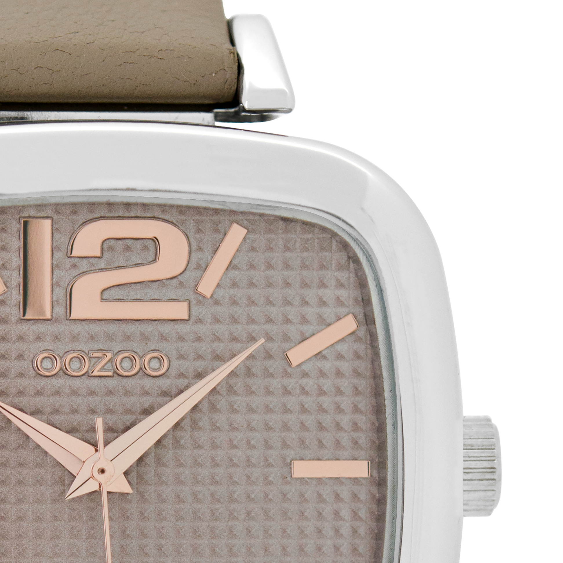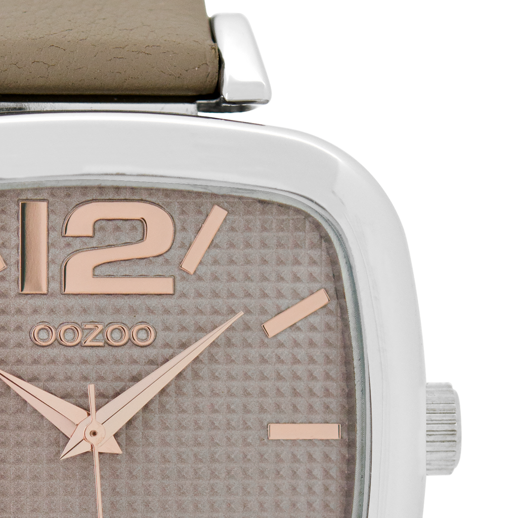 Zilverkleurige OOZOO horloge met taupe leren band - C9182
