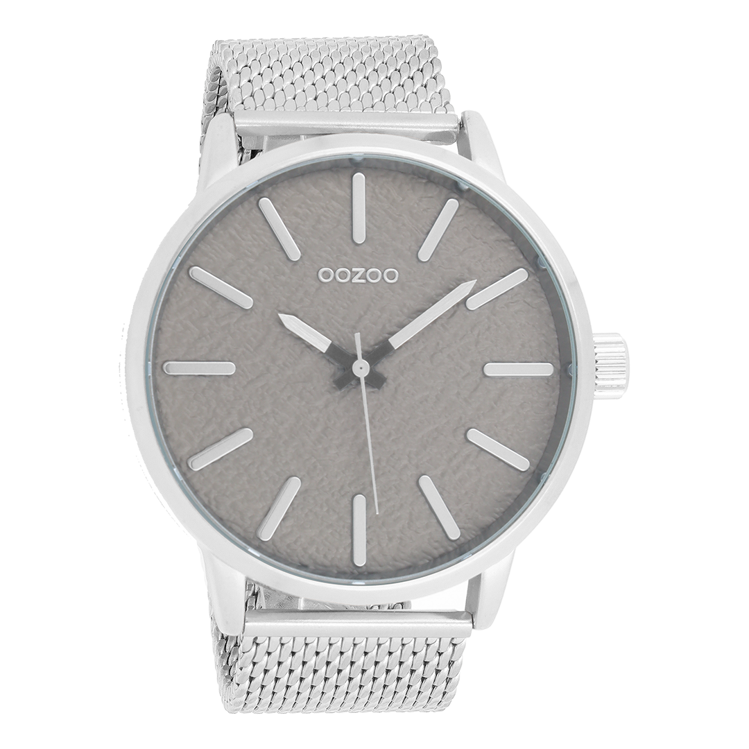 Zilverkleurige OOZOO horloge met metalen mesh armband - C9230