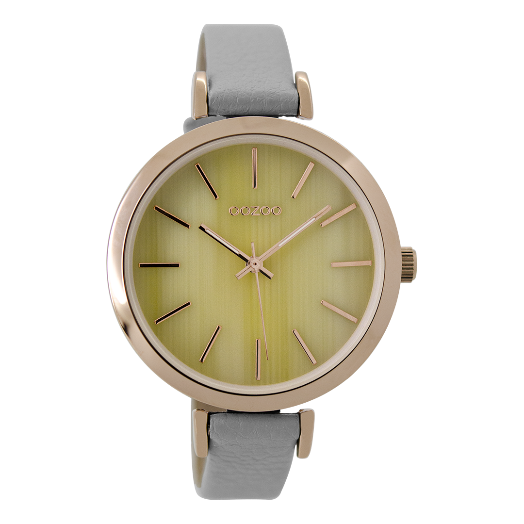 Val op met dit prachtige ronde dames design uit de trendy OOZOO Timepieces collectie. De C9235 heeft een steengrijze leren band en 40 mm rosé goudkleurige metalen horlogekast. Maak een fashion statement met deze okergele wijzerplaat, rosé goudkleurige strepen tijdsaanduidingen en bijpassende wijzers. Dit horloge is een musthave voor jouw garderobe en heeft een mineraalglas, stainless steel achterplaat en is nikkel-safe. Dit horloge heeft een 2 Japans uurwerk en wordt gedekt door een garantie van 2 jaar (zie sectie 3 van onze Refund, shipping & warranty policy).