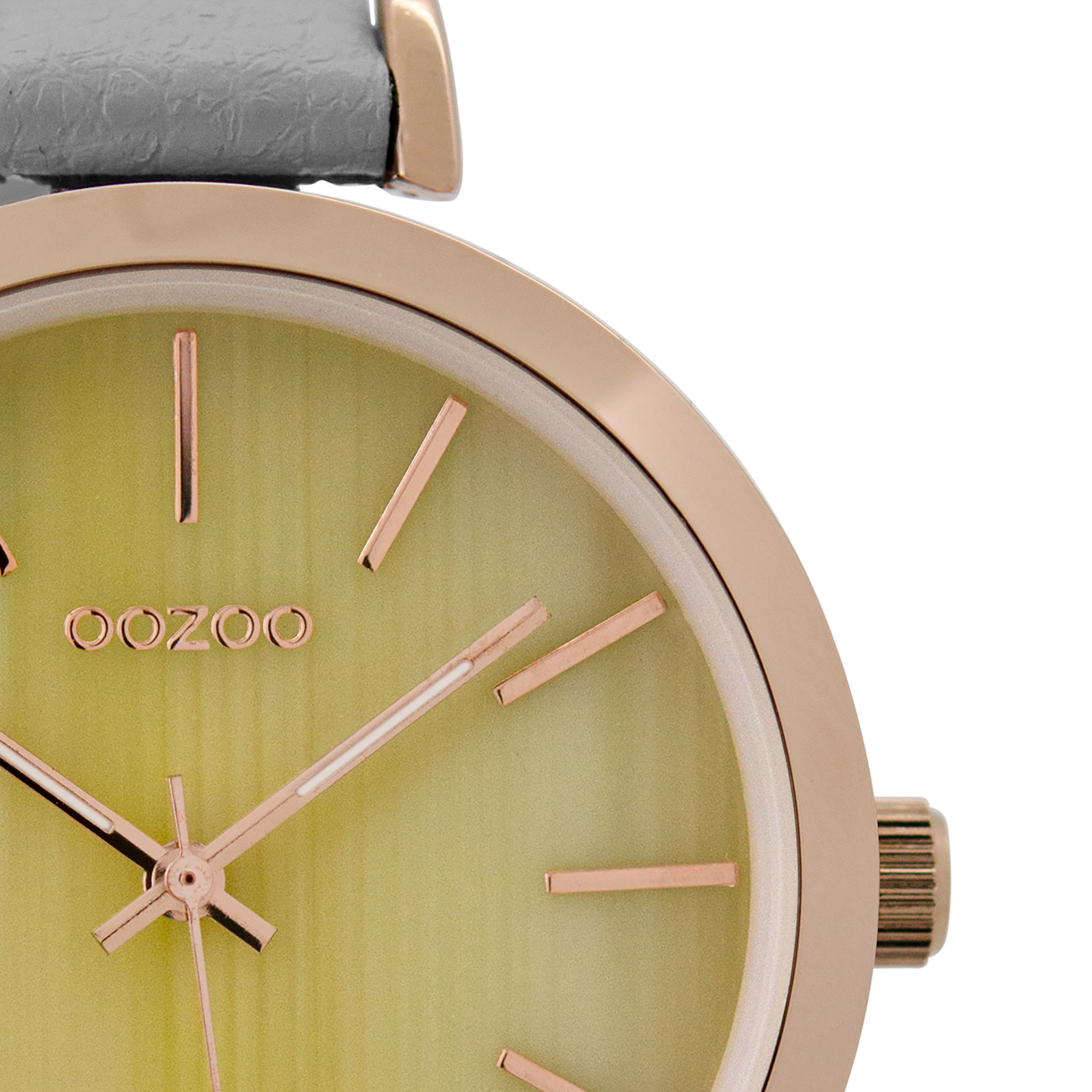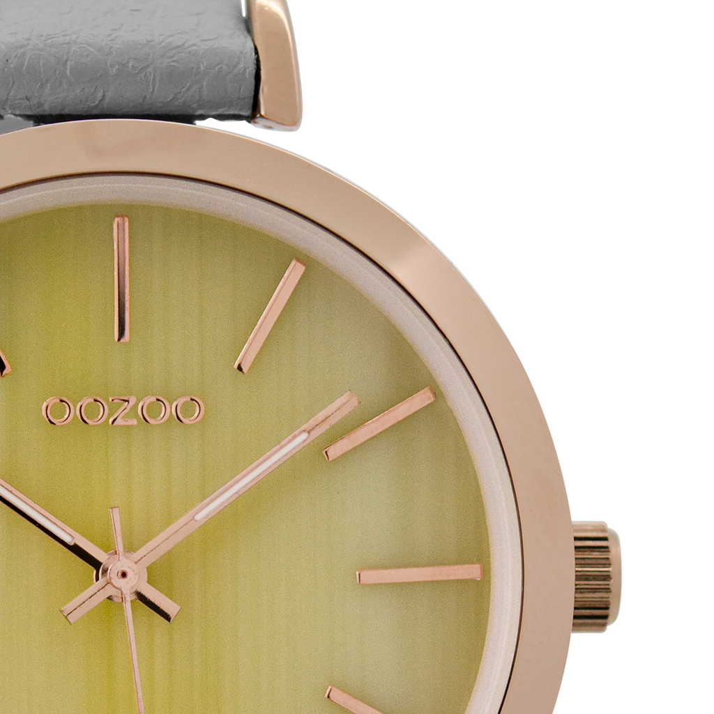 Rosé goudkleurige OOZOO horloge met steengrijze leren band - C9235