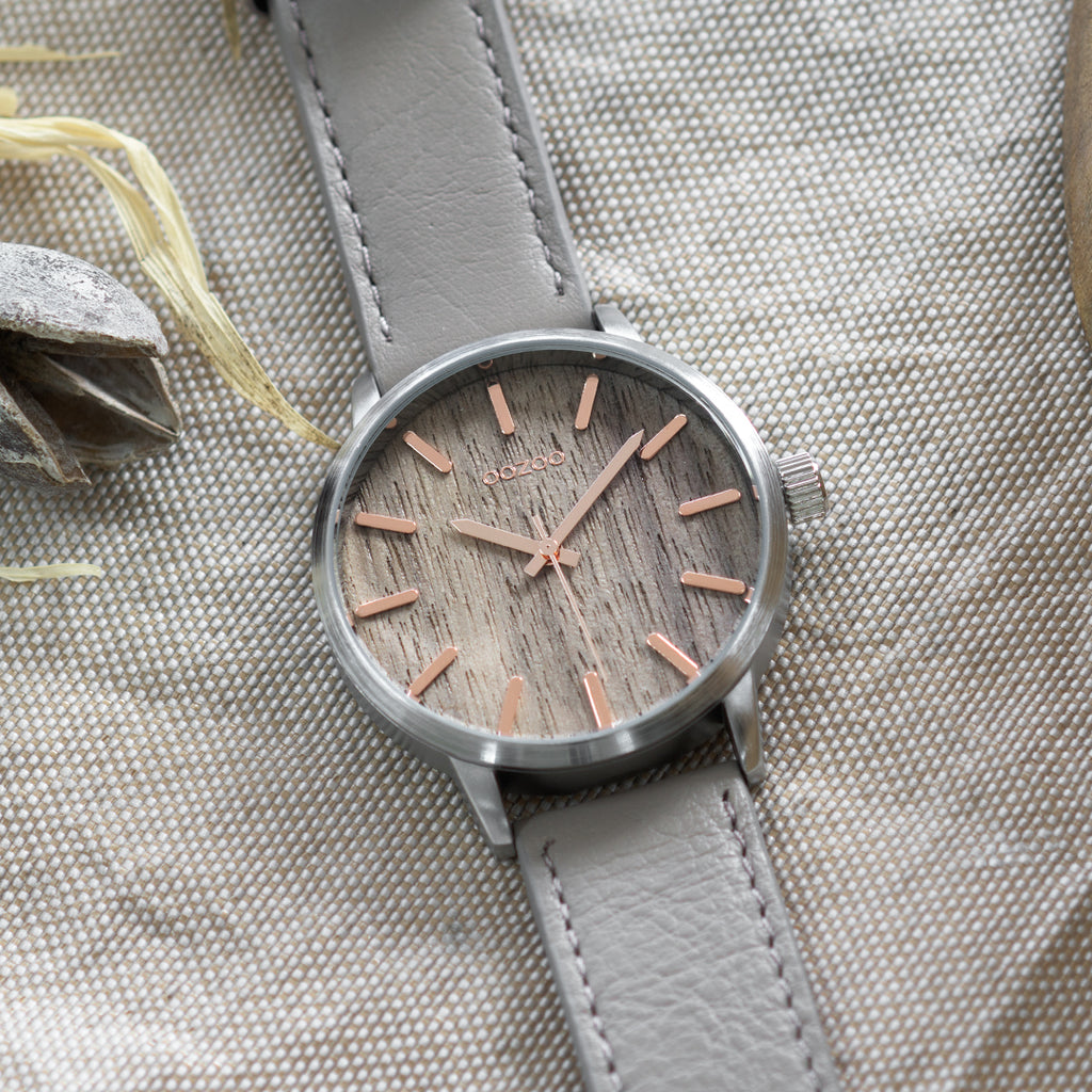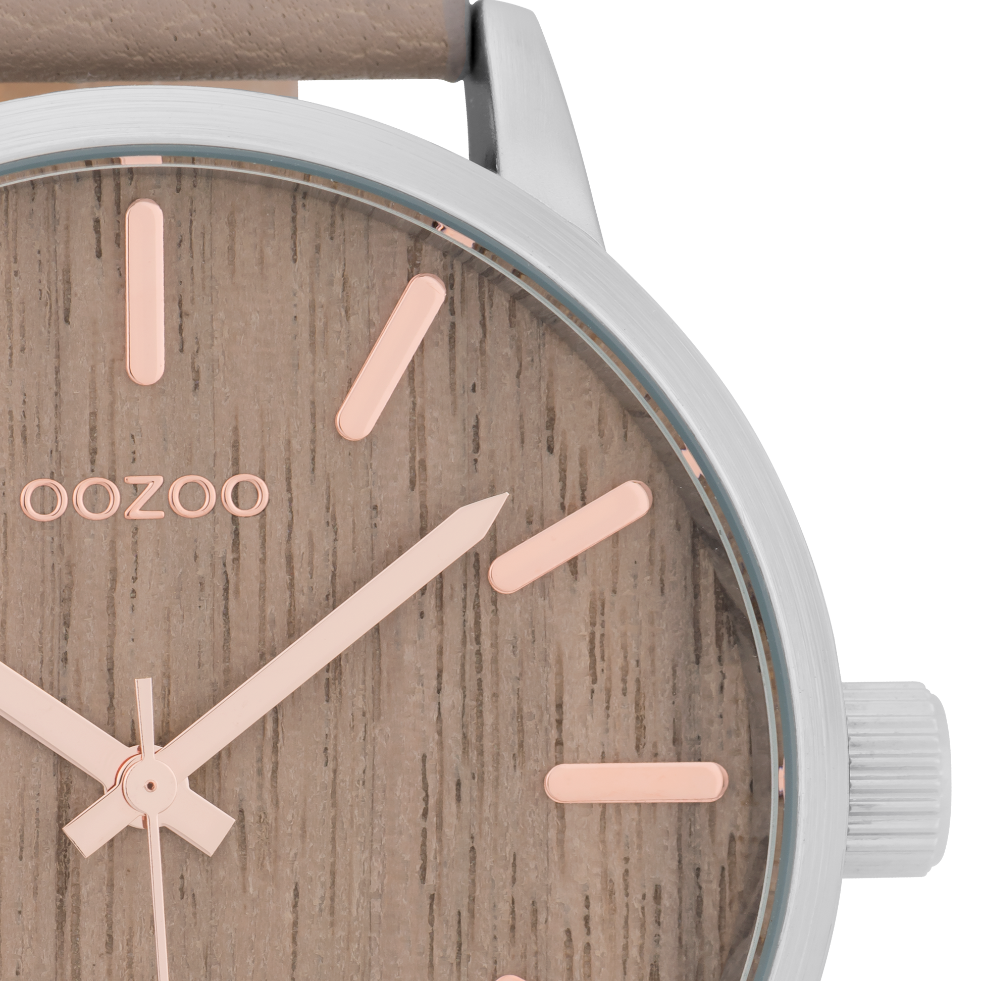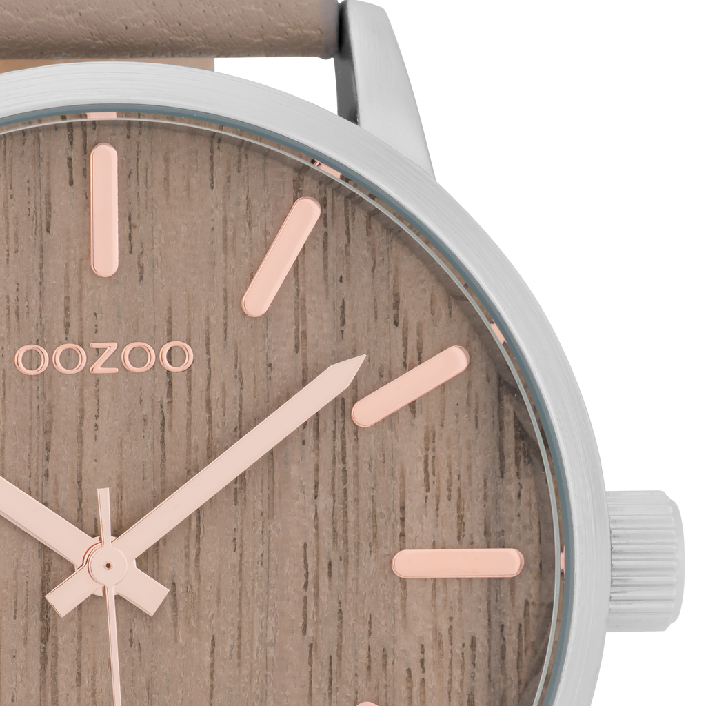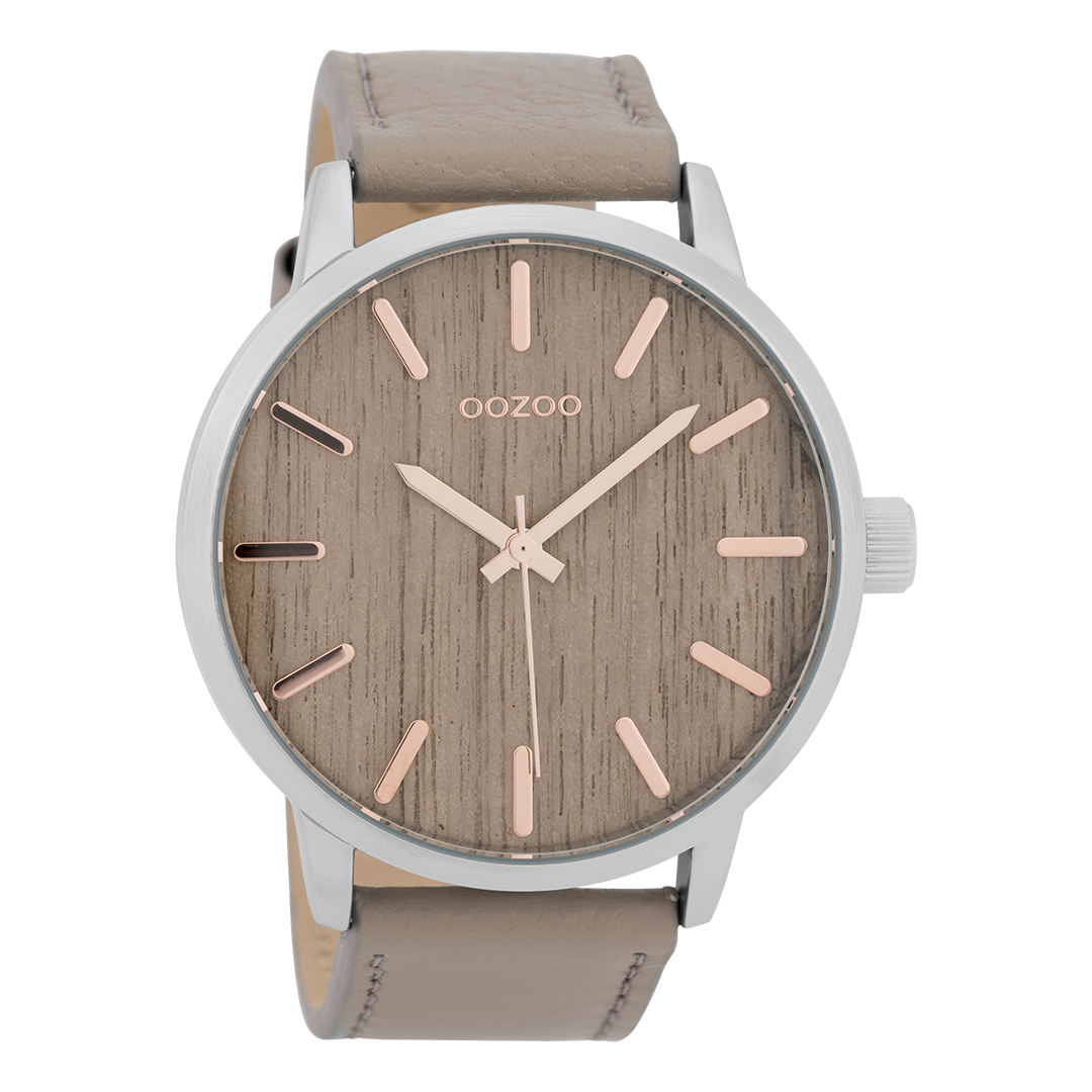 Zilverkleurige OOZOO horloge met taupe leren band - C9257