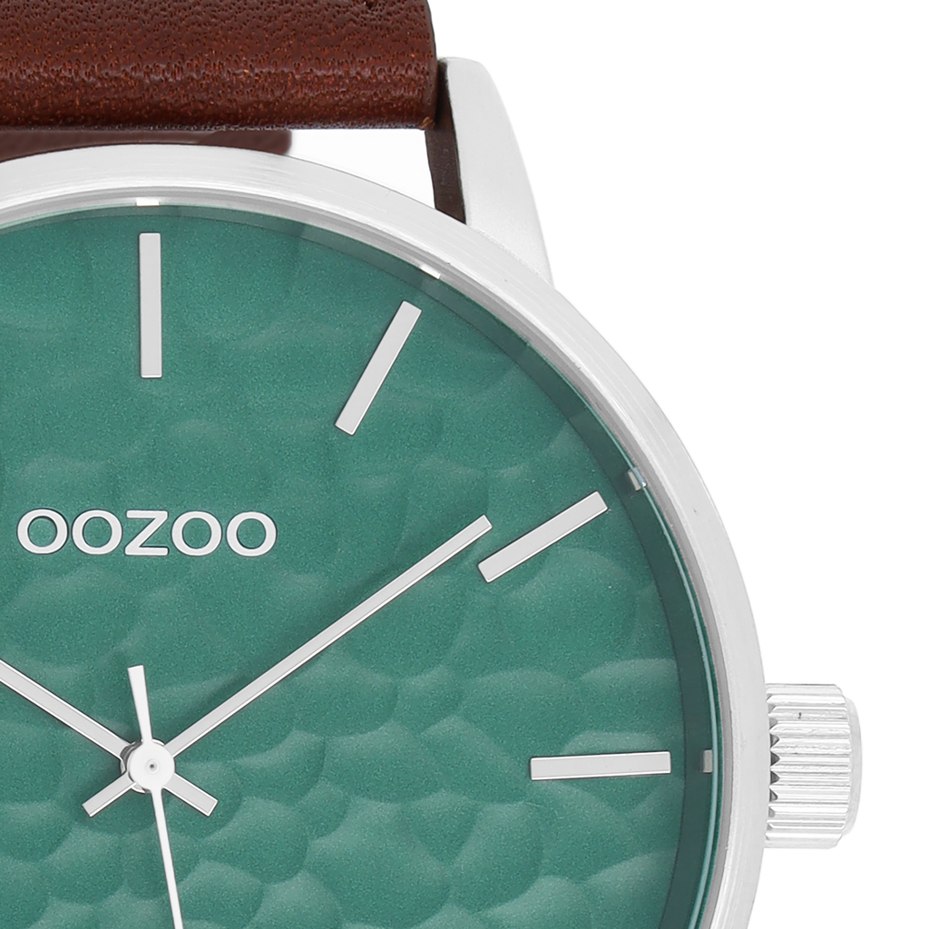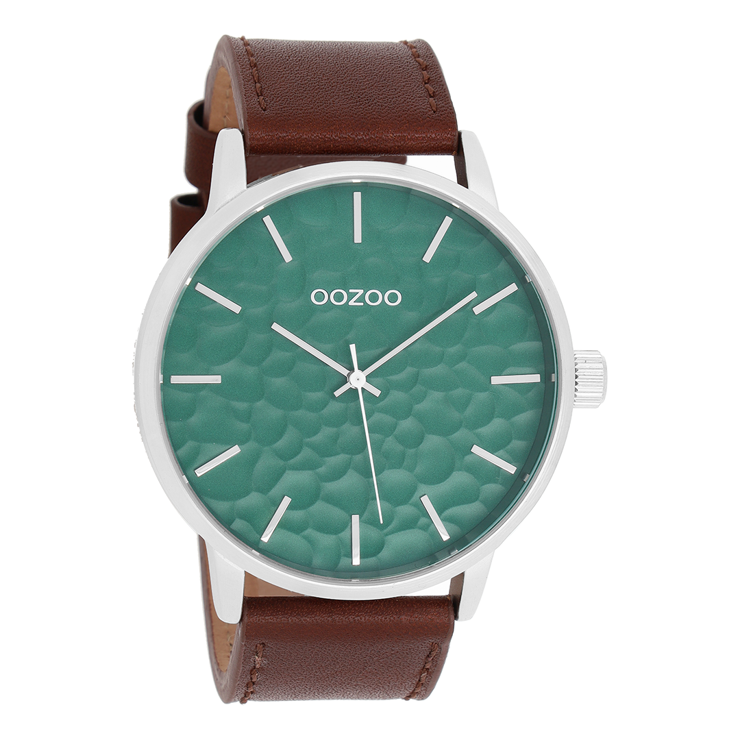 Zilverkleurige OOZOO horloge met bruine leren band - C9441