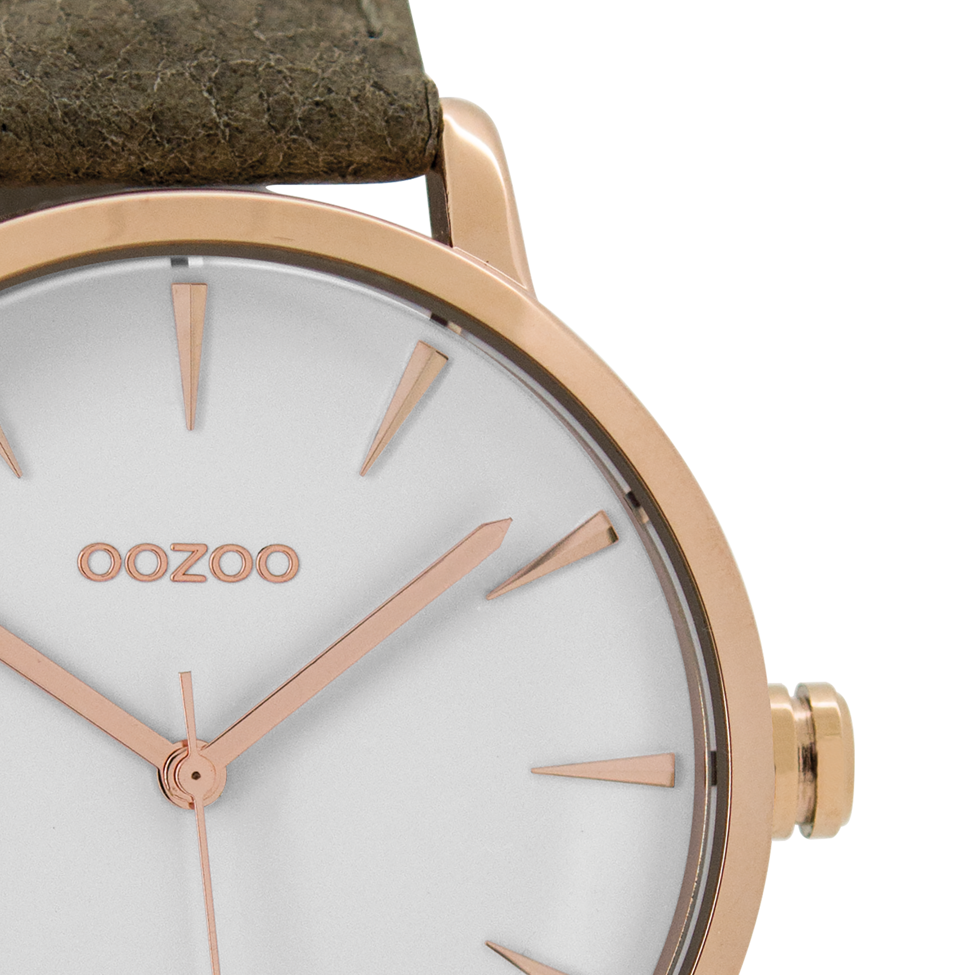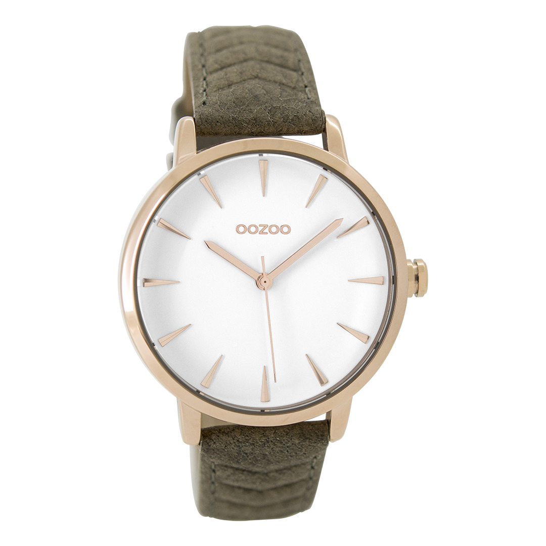 Val op met dit prachtige ronde dames design uit de trendy OOZOO Timepieces collectie. De C9509 heeft een bruine leren band en 40 mm rosé goudkleurige metalen horlogekast. Maak een fashion statement met deze witte wijzerplaat, rosé goudkleurige strepen tijdsaanduidingen en bijpassende wijzers. Dit horloge is een musthave voor jouw garderobe en heeft een mineraalglas, stainless steel achterplaat en is nikkel-safe. Dit horloge heeft een 2 Japans uurwerk en wordt gedekt door een garantie van 2 jaar (zie sectie 3 van onze Refund, shipping & warranty policy).