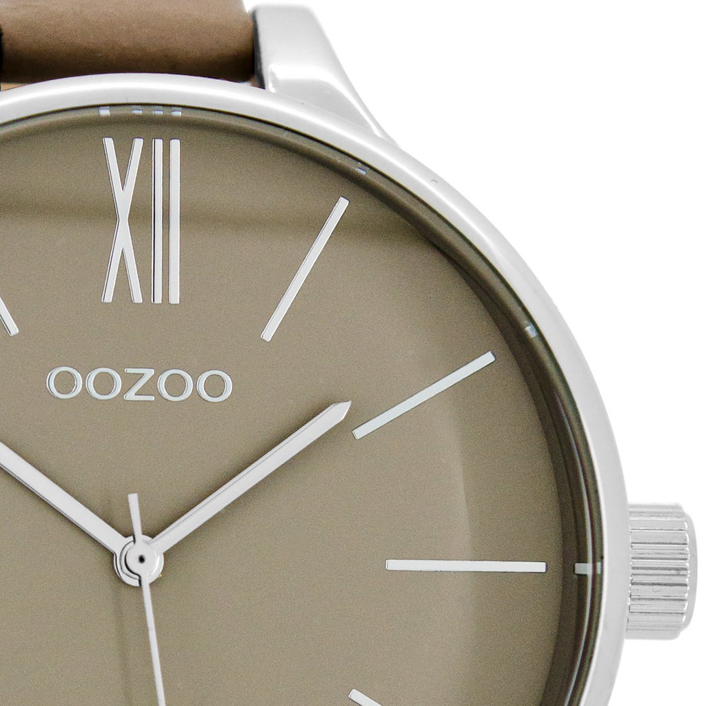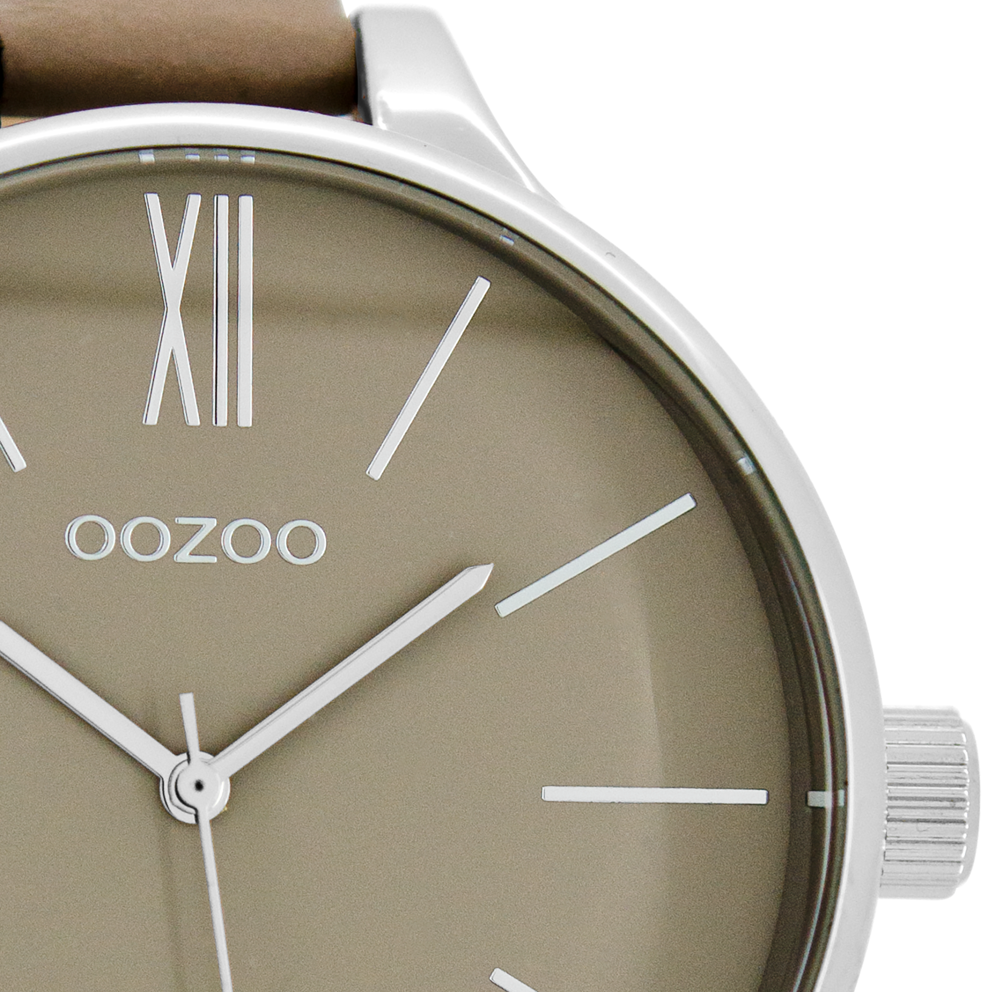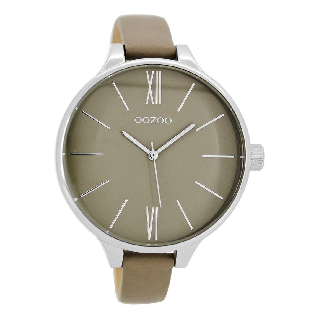Zilverkleurige OOZOO horloge met taupe leren band - C9543