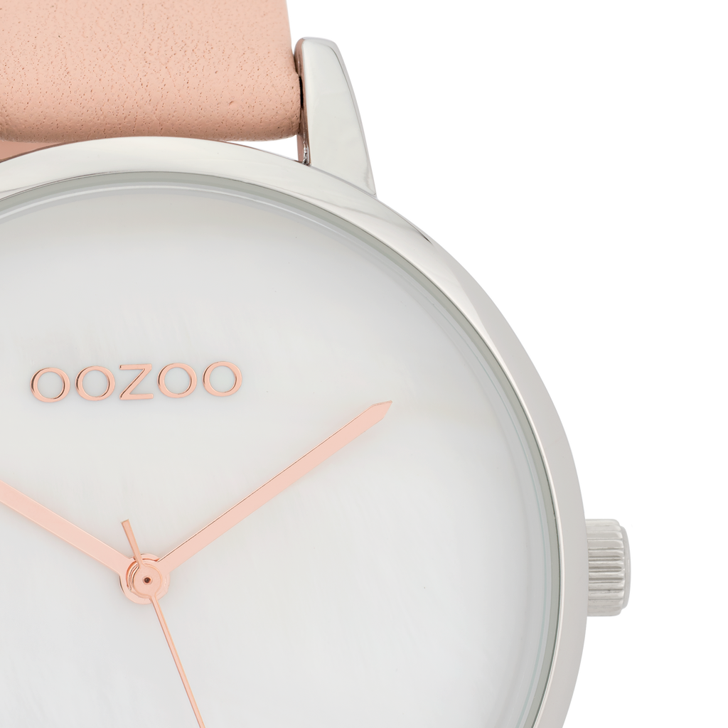 Val op met dit prachtige ronde dames design uit de trendy OOZOO Timepieces collectie. De C9587 heeft een zacht roze leren band en 40 mm zilverkleurige metalen horlogekast. Maak een fashion statement met deze witte parelmoer wijzerplaat, geen tijdsaanduidingen en rosé kleurige wijzers. Dit horloge is een musthave voor jouw garderobe en heeft een mineraalglas, stainless steel achterplaat en is nikkel-safe. Dit horloge heeft een 2 Japans uurwerk en wordt gedekt door een garantie van 2 jaar (zie sectie 3 van onze Refund, shipping & warranty policy).