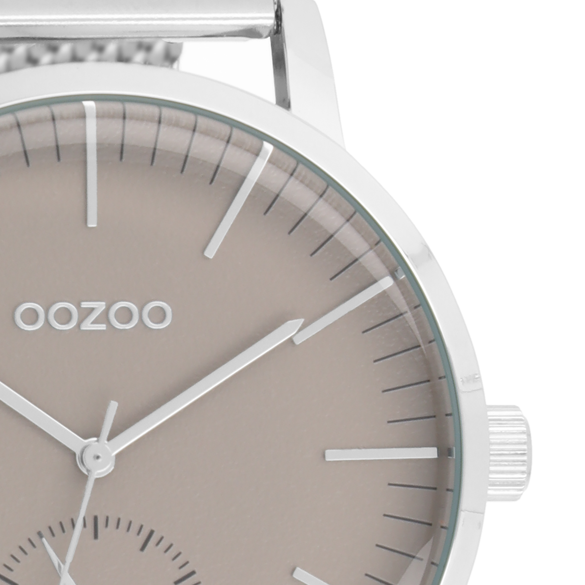 Zilverkleurige OOZOO horloge met metalen mesh armband - C9621