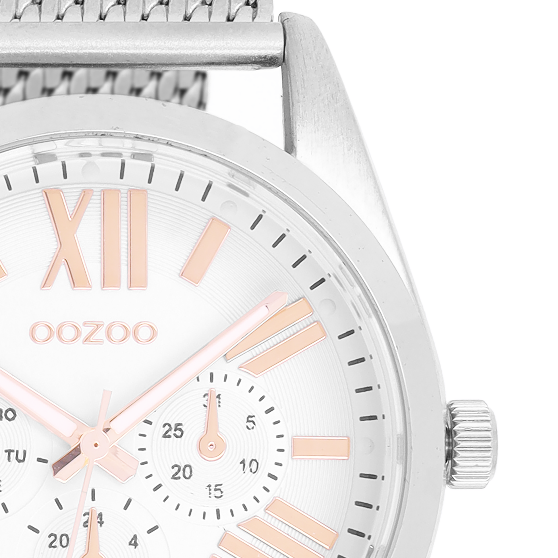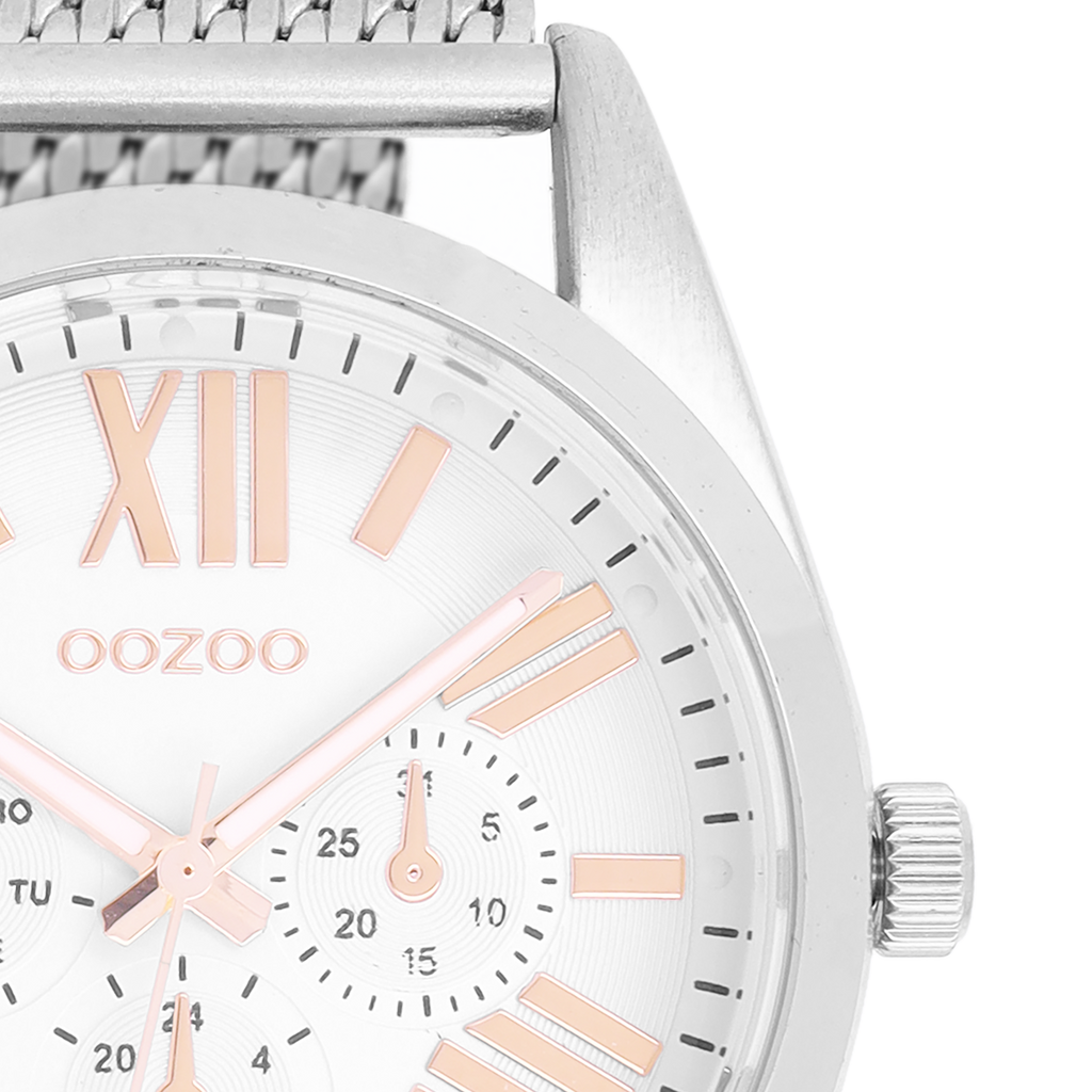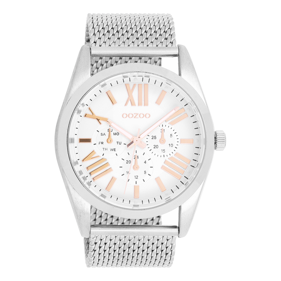Zilverkleurige OOZOO horloge met metalen mesh armband - C9640