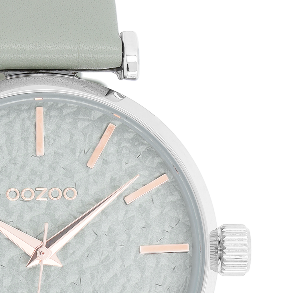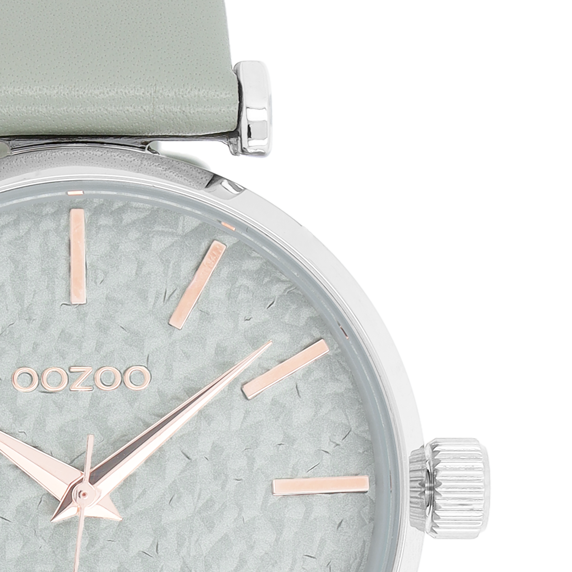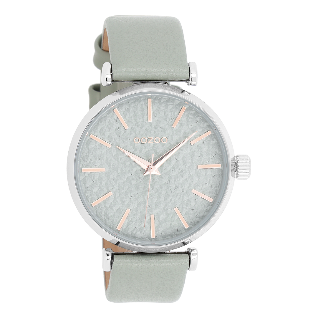 Zilverkleurige OOZOO horloge met groen grijze leren band - C9665