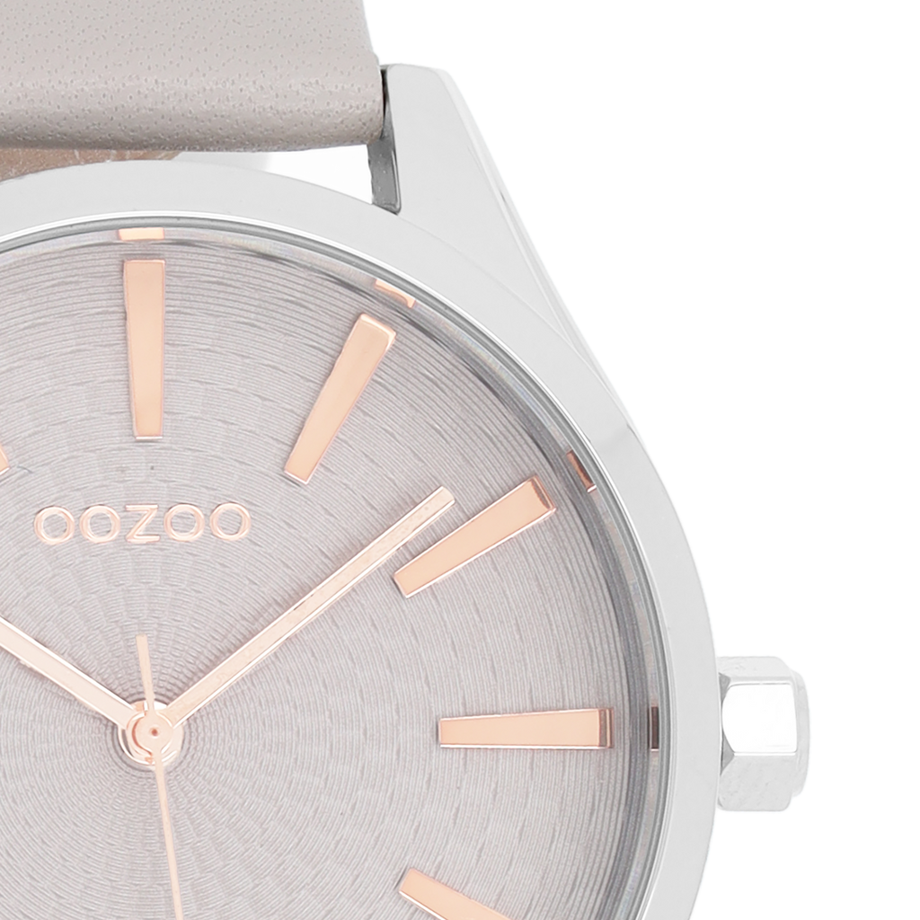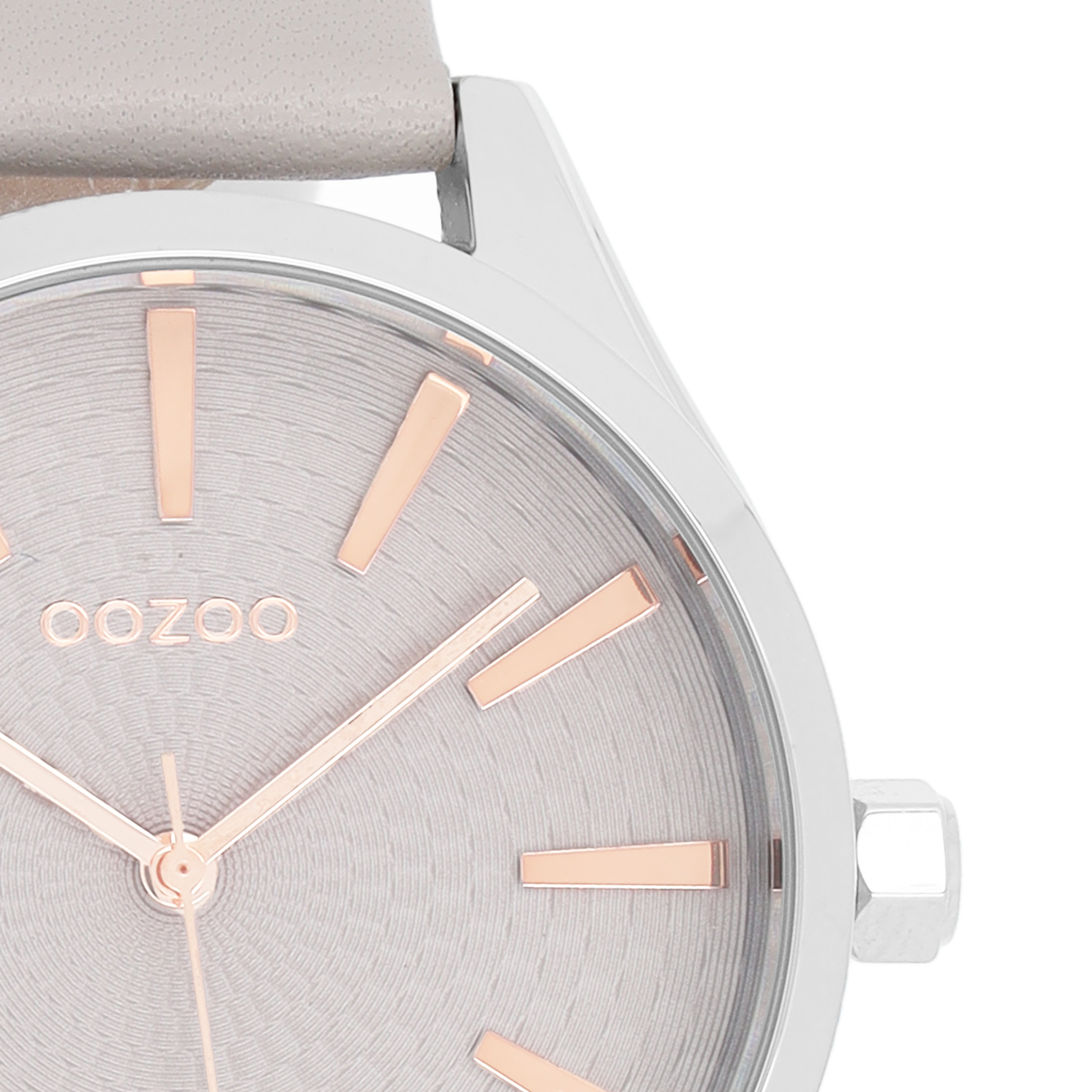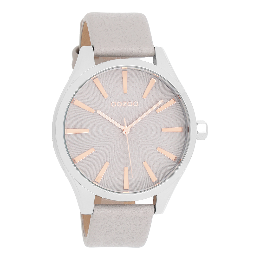 Zilverkleurige OOZOO horloge met licht grijze leren band - C9685
