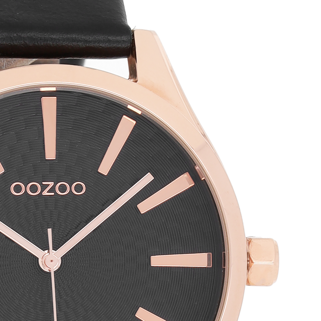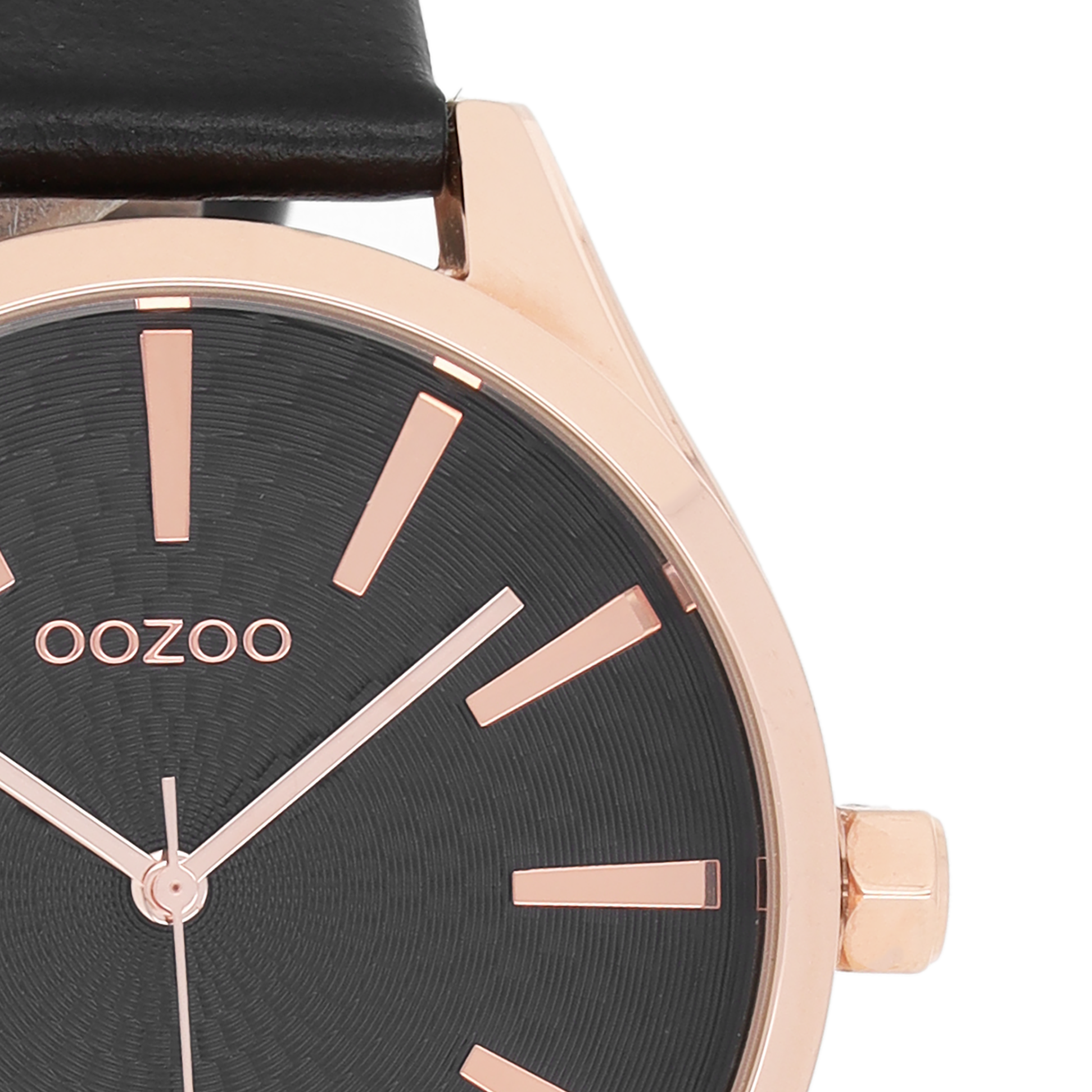 Rosé goudkleurige OOZOO horloge met zwarte leren band - C9689