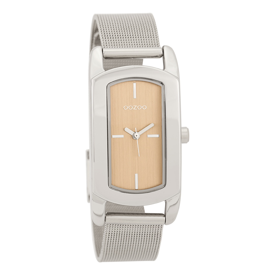 Zilverkleurige OOZOO horloge met metalen mesh armband - C9701