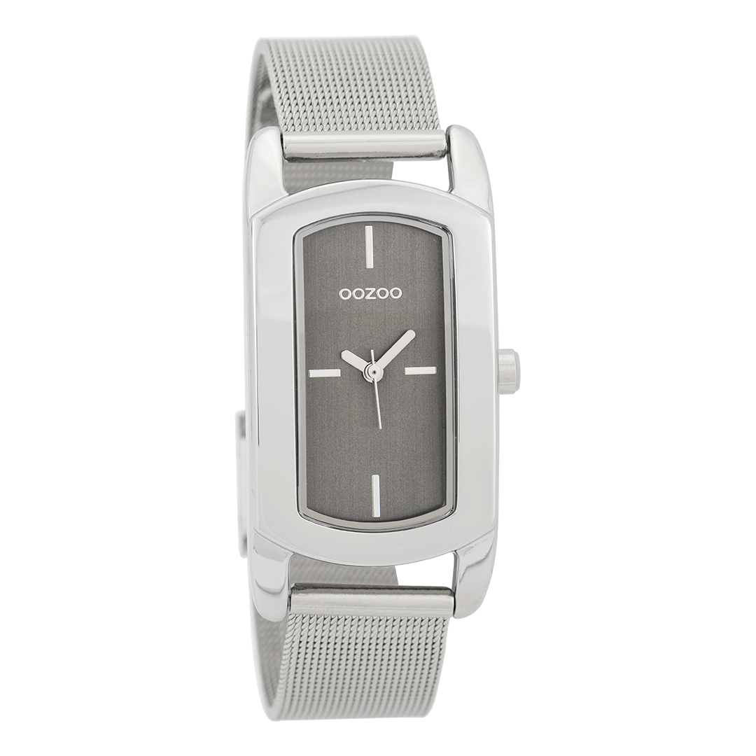 Zilverkleurige OOZOO horloge met metalen mesh armband - C9703