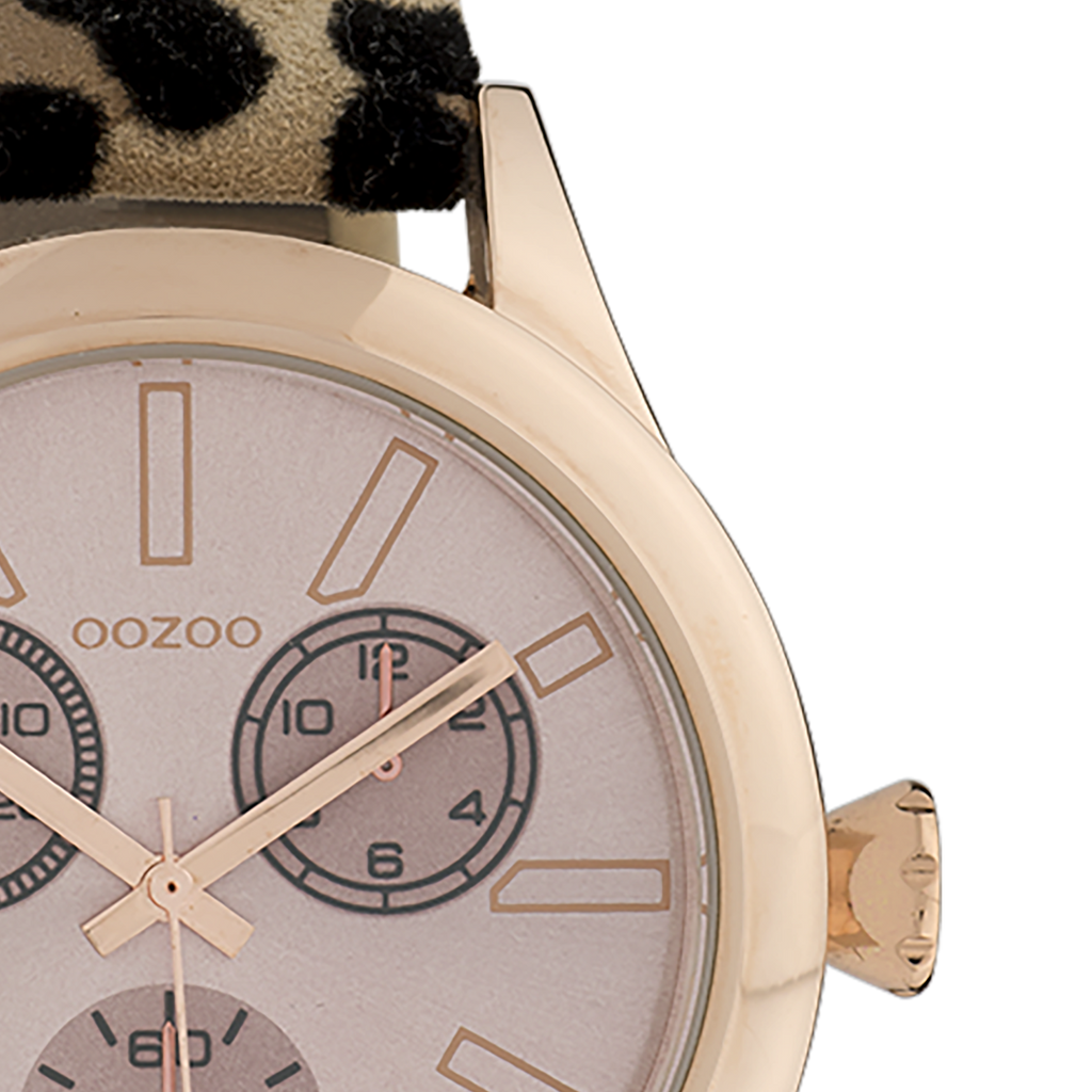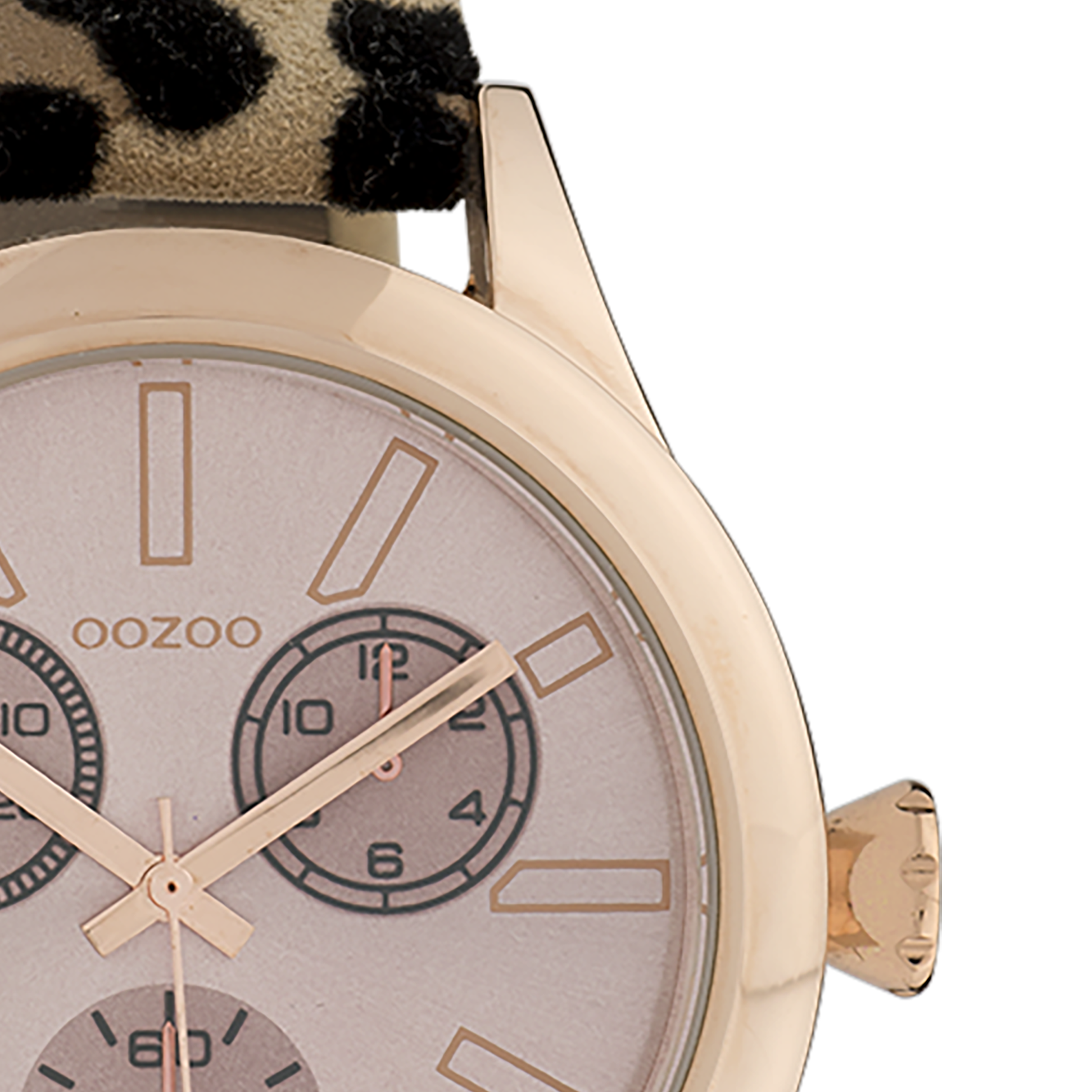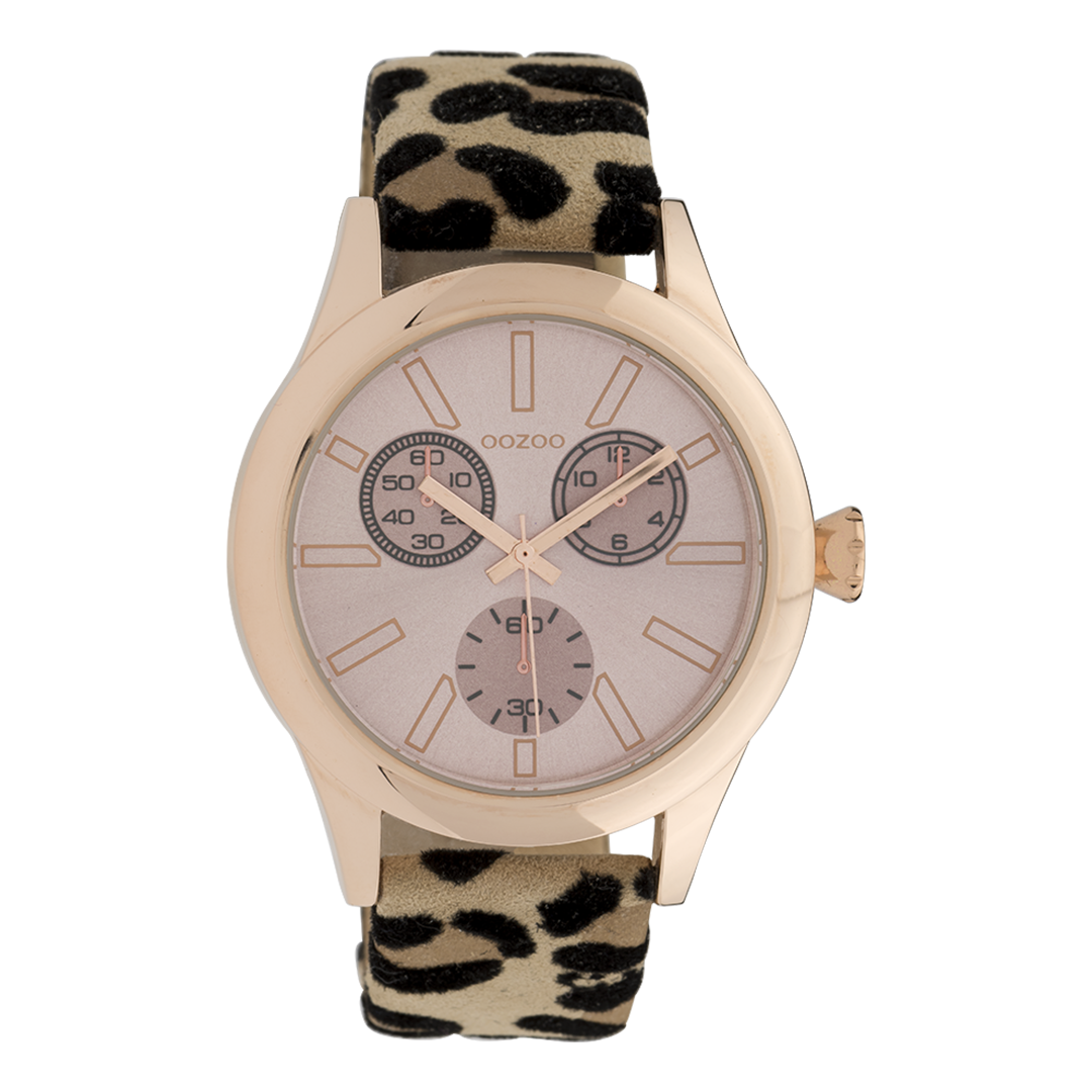 Val op met dit prachtige ronde dames design uit de trendy OOZOO Timepieces collectie. De C9797 heeft een luipaard print bruine leren band en 42 mm rosé goudkleurige metalen horlogekast. Maak een fashion statement met deze rosé goudkleurige chrono wijzerplaat, rosé goudkleurige strepen tijdsaanduidingen en bijpassende wijzers. Dit horloge is een musthave voor jouw garderobe en heeft een mineraalglas, stainless steel achterplaat en is nikkel-safe. Dit horloge heeft een 2 Japans uurwerk en wordt gedekt door een garantie van 2 jaar (zie sectie 3 van onze Refund, shipping & warranty policy).