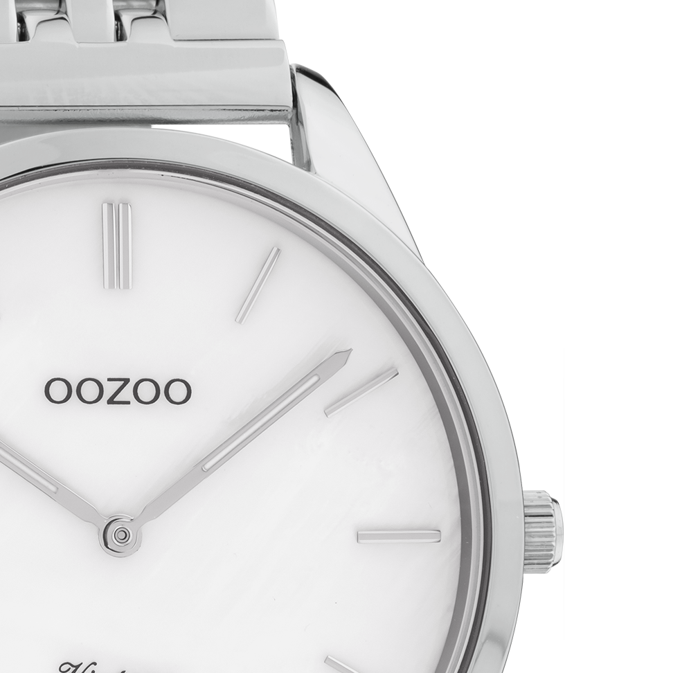 Zilverkleurige OOZOO horloge met roestvrijstalen armband - C9980