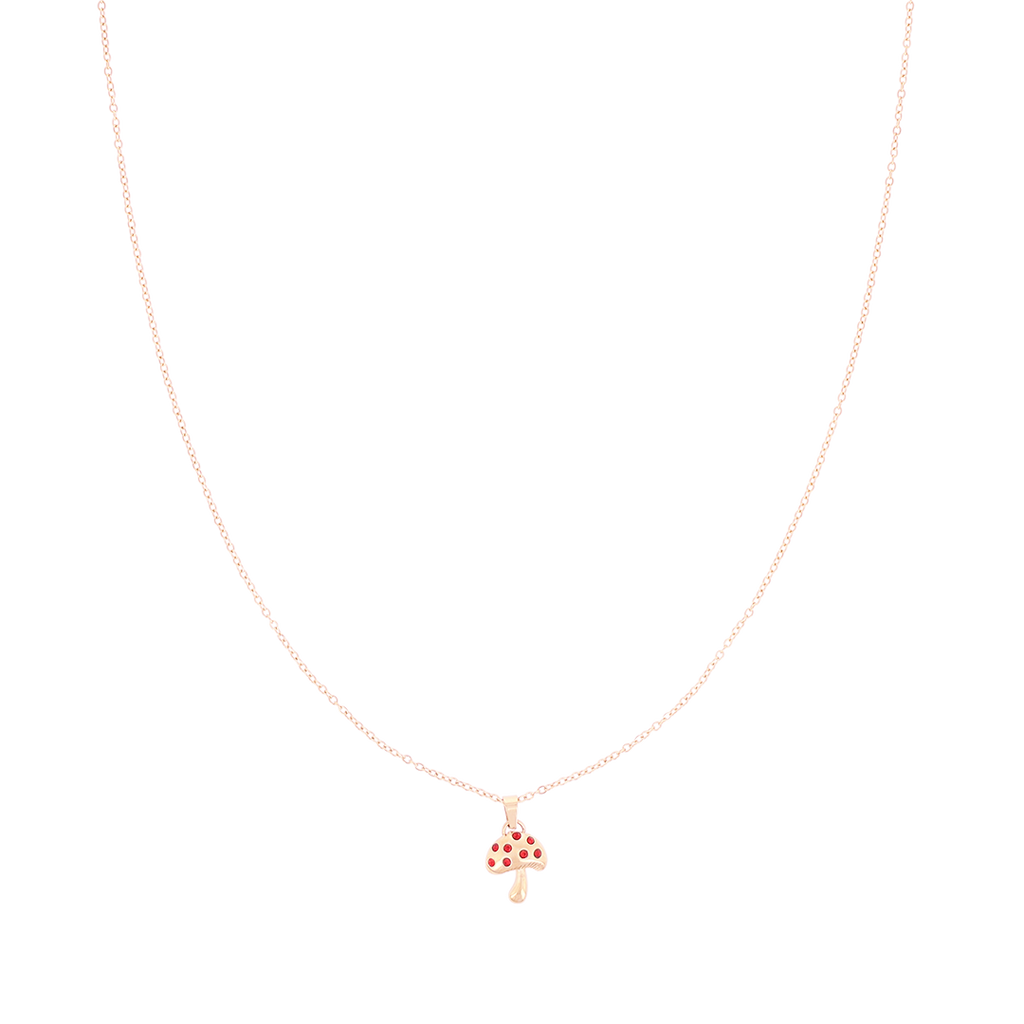Goudkleurige oorring + ketting set met een paddenstoel bedeltje
