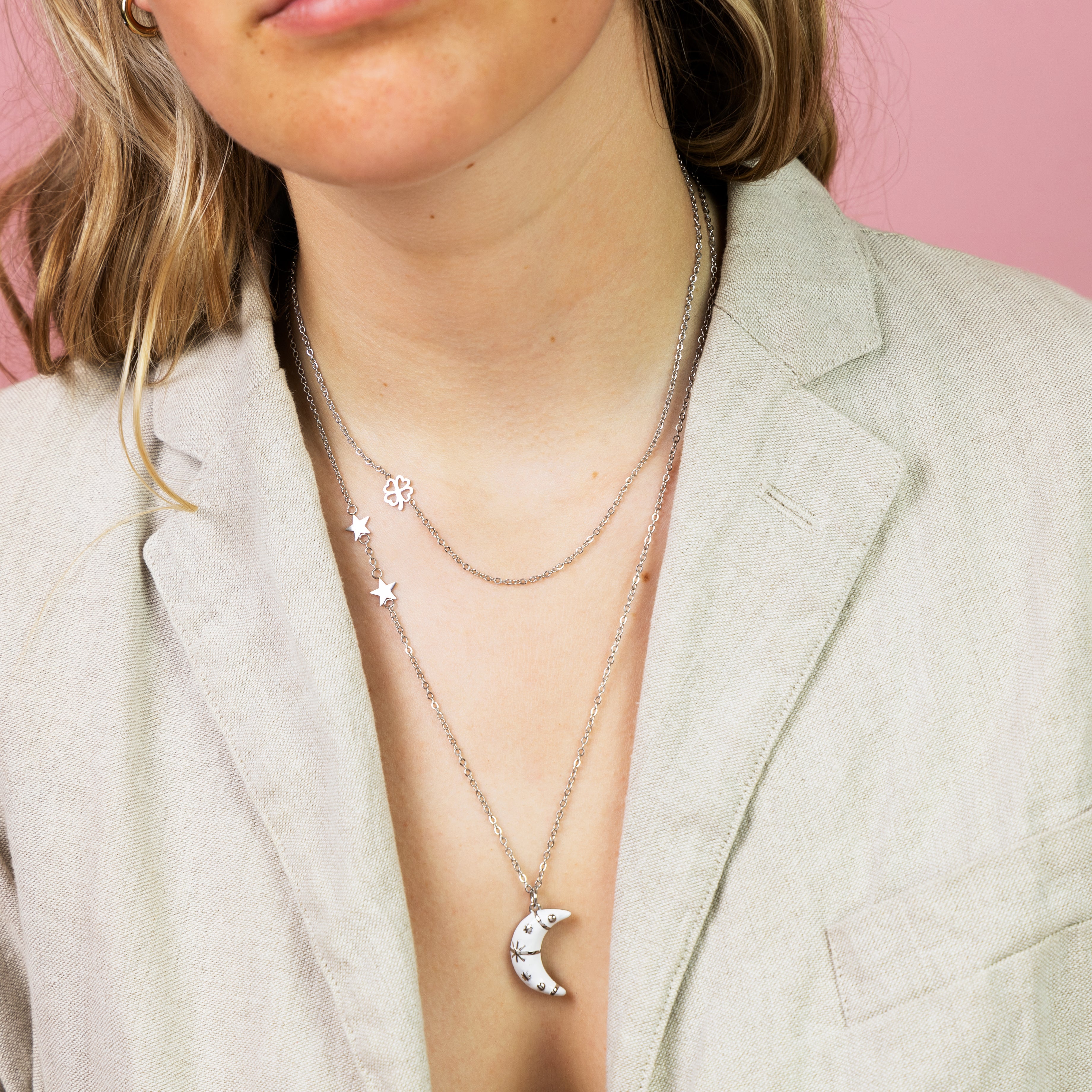 OOZOO Jewellery is een fantastische aanvulling op je persoonlijke accessoires collectie. Deze prachtige zilverkleurig/witte ketting met een maan bedeltje is het perfecte accessoire voor dames om je outfit compleet te maken. De ketting is 52 cm lang en is 8 cm verstelbaar. Dit geweldige sieraad is gemaakt van roestvrijstaal met zilverkleurig/witte PVD-plating en gaat daarom lang mee. Dit materiaal zorgt ervoor dat de kleur van het sieraad mooi blijft. Dit product (SN-2030) wordt gedekt door een garantieperiode van 3 maanden (zie sectie 3 van ons restitutie-, verzendings- en garantiebeleid).