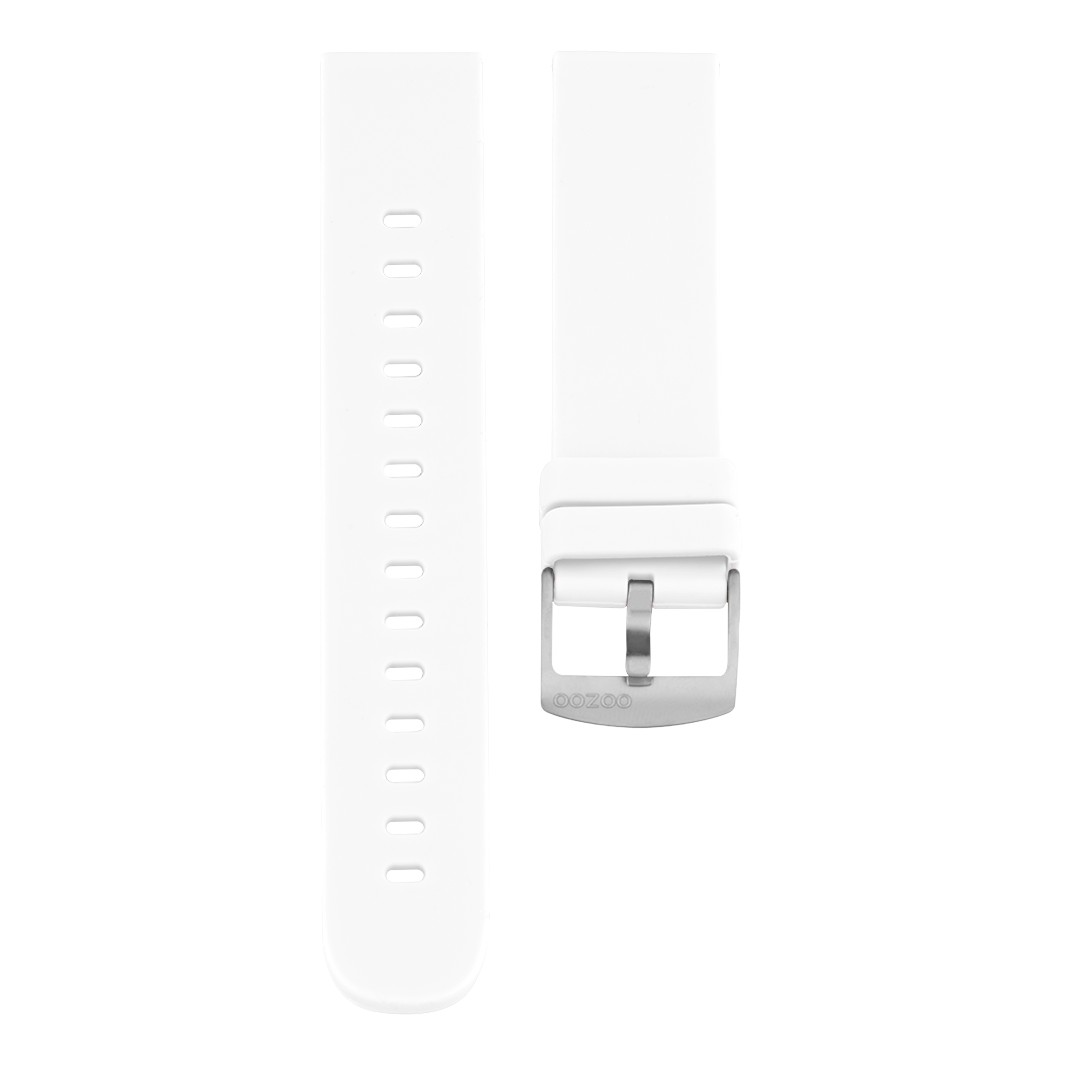 This unisex smartwatch watch strap gives you a totally new look! Switch the straps of your OOZOO Smartwatch for a difference of day and night. This matte white rubber strap with silver clasp gives your smartwatch a completely different style. Be smart, all day and all night. This strap fits OOZOO Smartwatch designs Q00110-122, Q00130-139 & Q00300-332. All straps have a stainless steel clasp and are nickel safe. (For information about the warranty, see section 3 of our Refund, shipping & warranty policy).