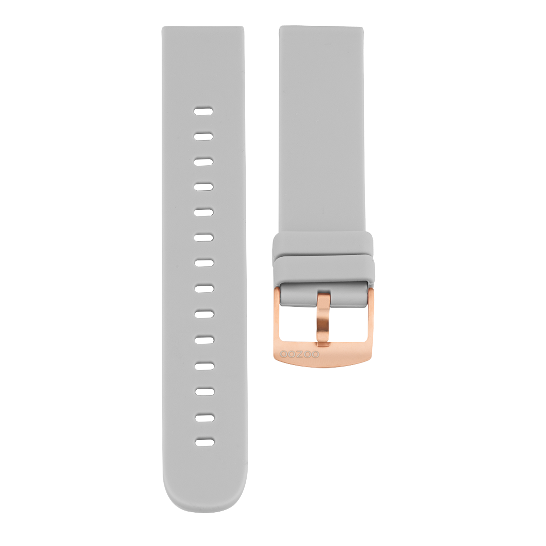 This ladies smartwatch watch strap gives you a totally new look! Switch the straps of your OOZOO Smartwatch for a difference of day and night. This matte stone grey rubber strap with rose gold clasp gives your smartwatch a completely different style. Be smart, all day and all night. This strap fits OOZOO Smartwatch designs Q00110-122, Q00130-139 & Q00300-332. All straps have a stainless steel clasp and are nickel safe. (For information about the warranty, see section 3 of our Refund, shipping & warranty policy).