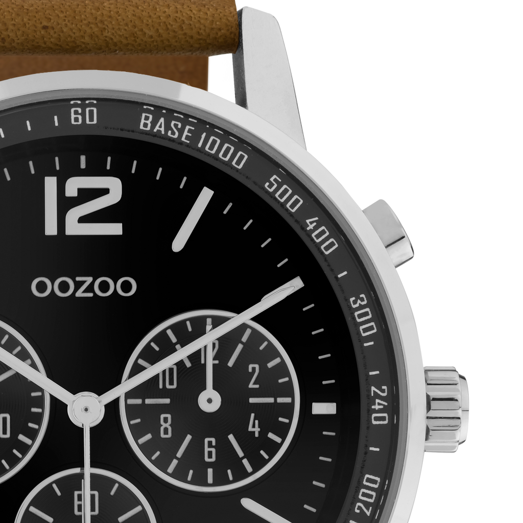Silver coloured OOZOO watch with brown leather strap - C10812