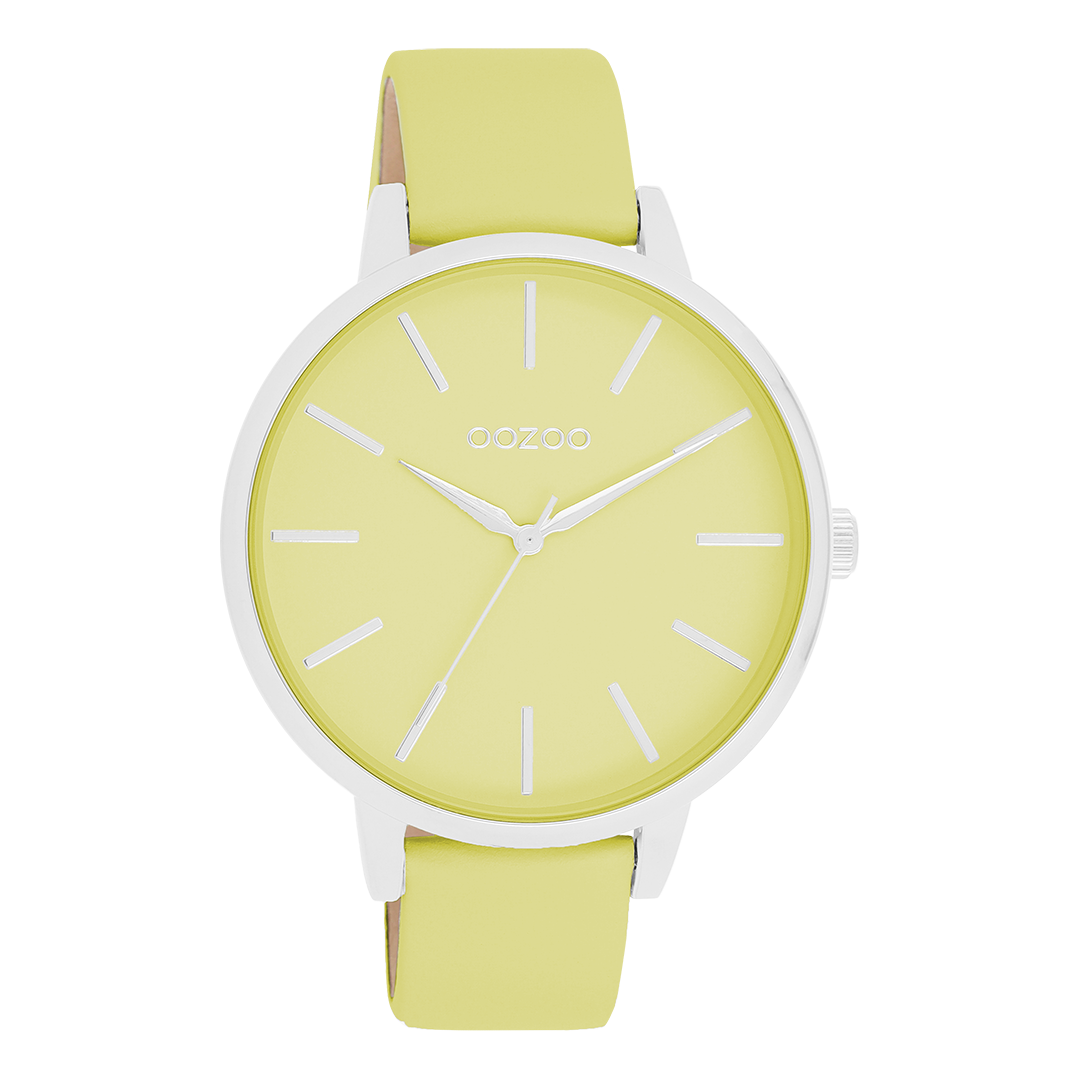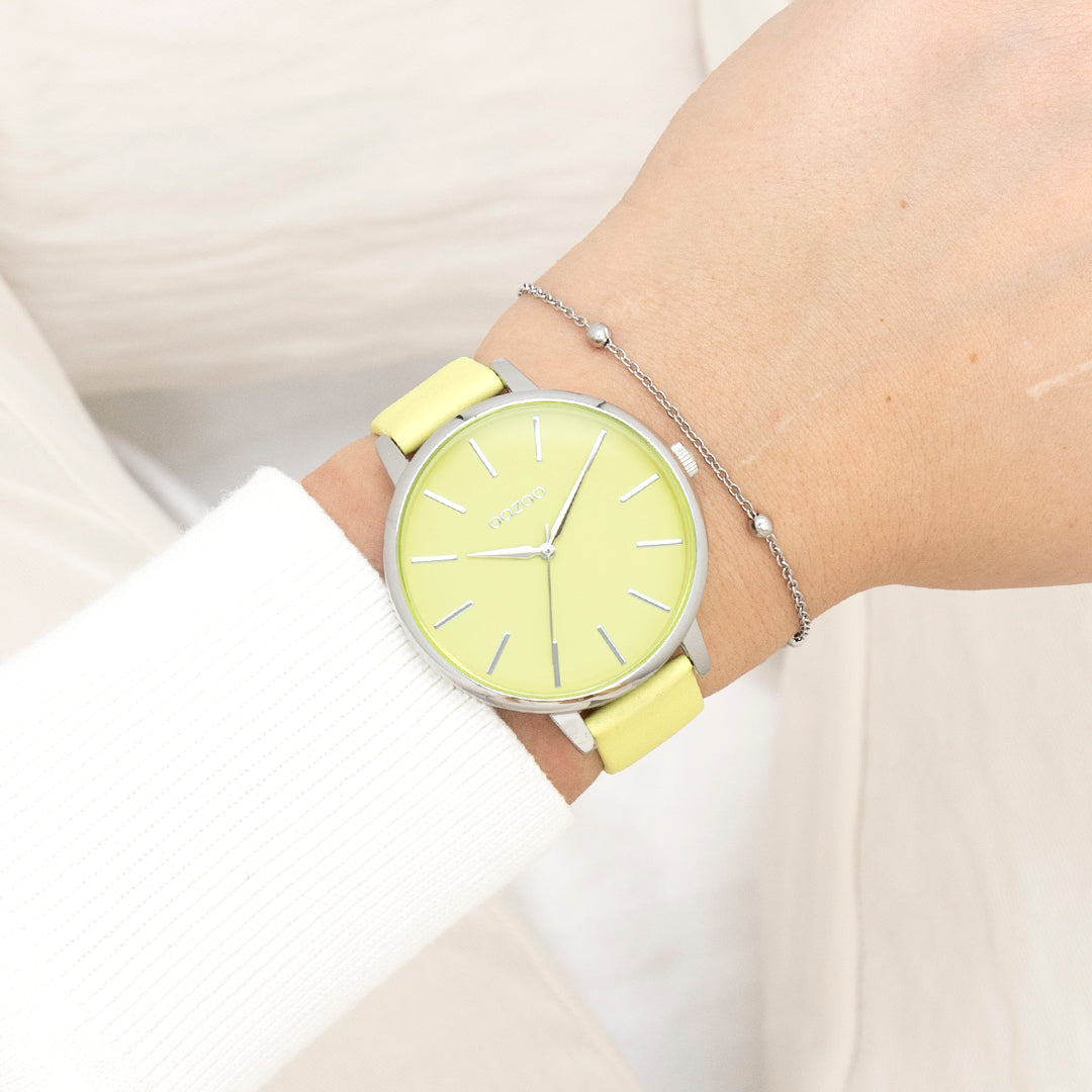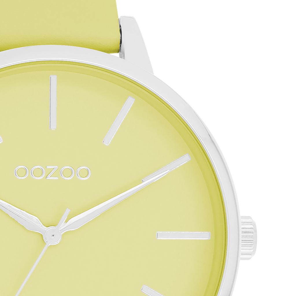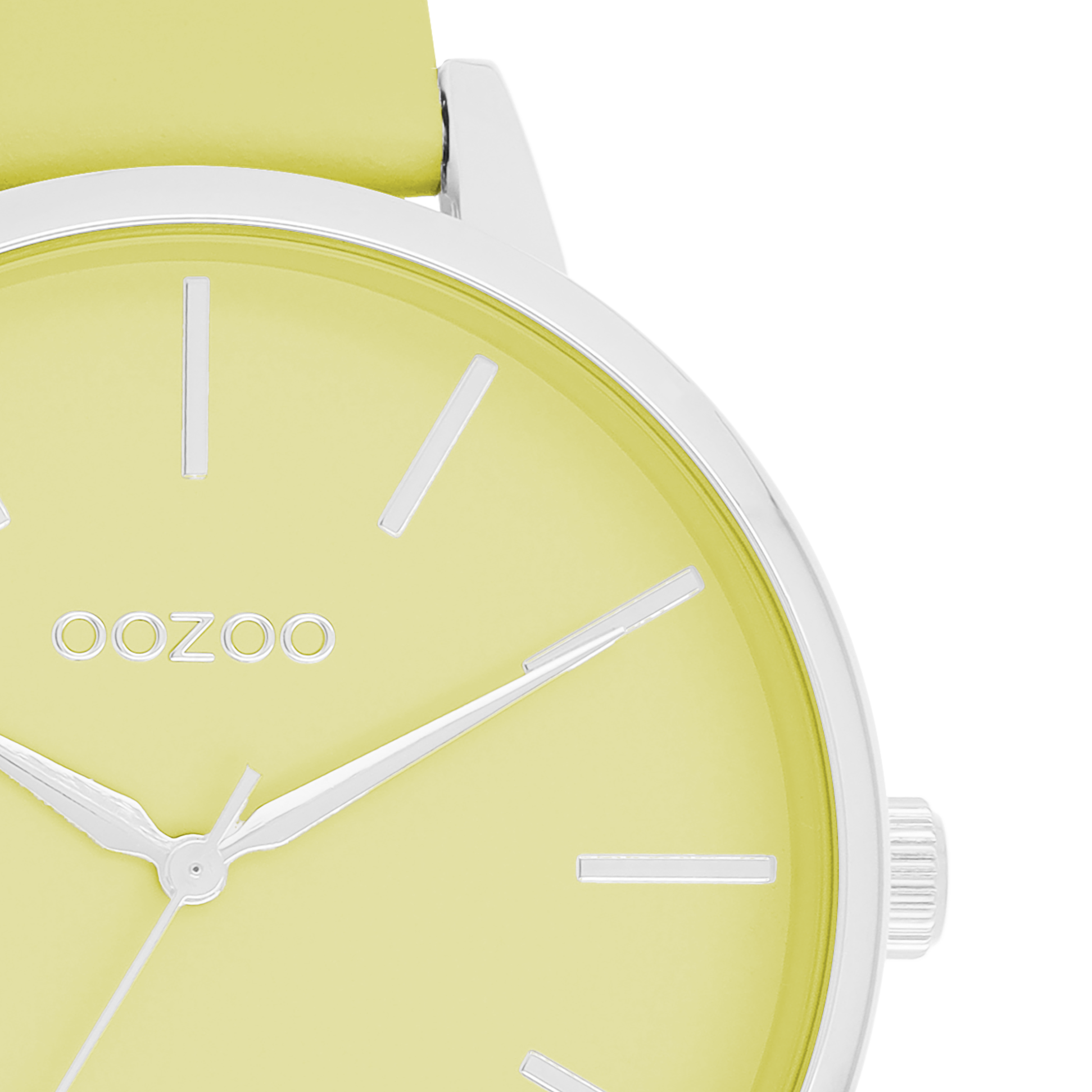 Silver coloured OOZOO watch with lime green leather strap - C11360