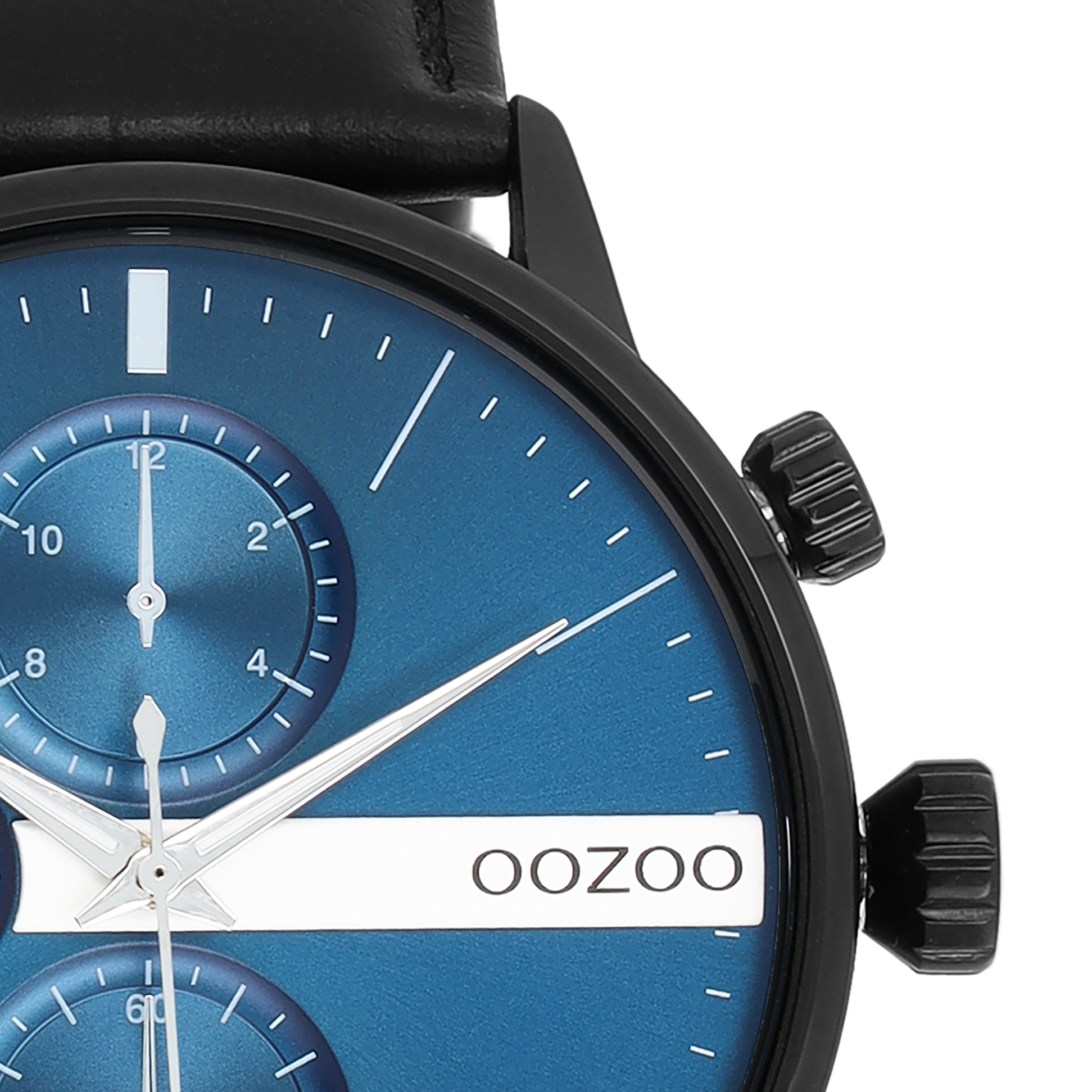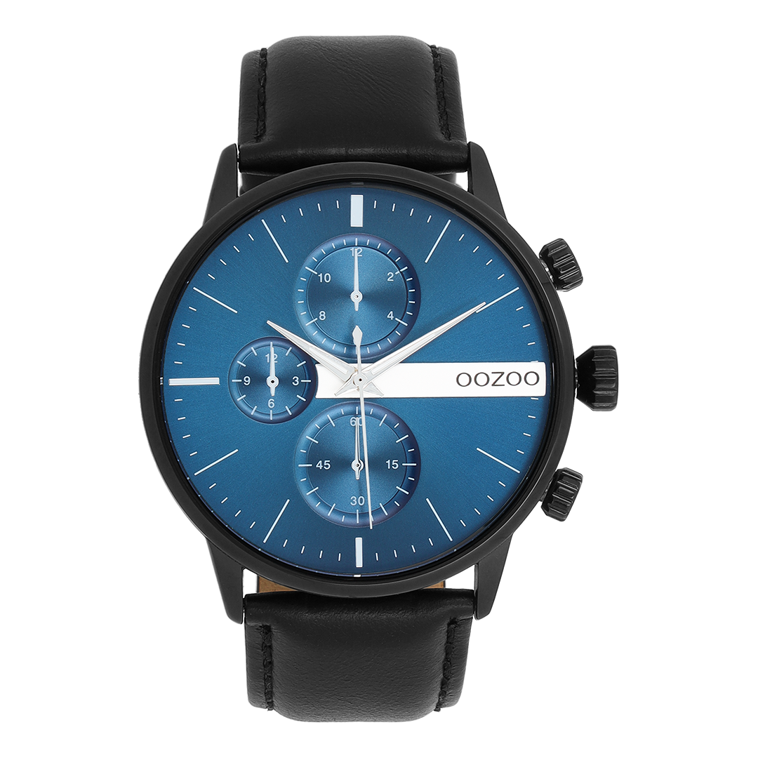Stand out with this beautiful round gents design from the trendy OOZOO Timepieces collection. The C11510 has a stitched black leather strap and 45 mm black metal watch case. You are making quite the fashion statement with this blue chrono/sunray dial, silver coloured stripes digits and matching hands. This essential watch for your wardrobe has a mineral glass, stainless steel backplate and is nickel safe. This watch has a 2ATM Japanese movement and is covered by a 2 year warranty (see section 3 of our Refund, shipping & warranty policy).