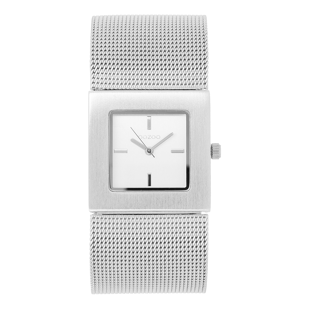 Silver coloured OOZOO watch with metal mesh bracelet - C2001